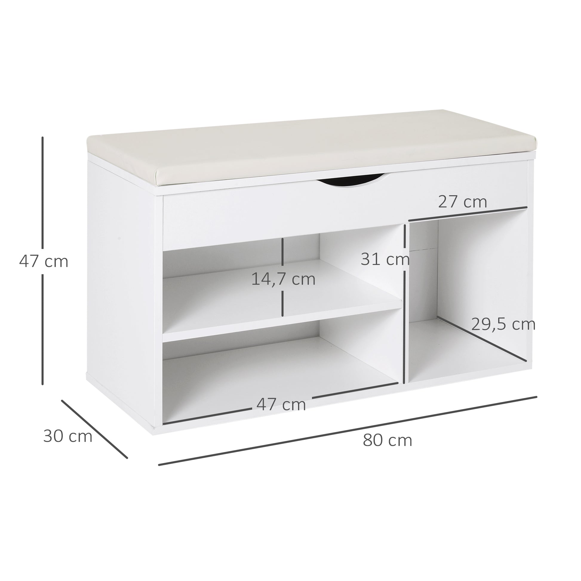 Banco Sapateira Branco 80x30x47 cm - Assento Acolchoado e Prateleiras