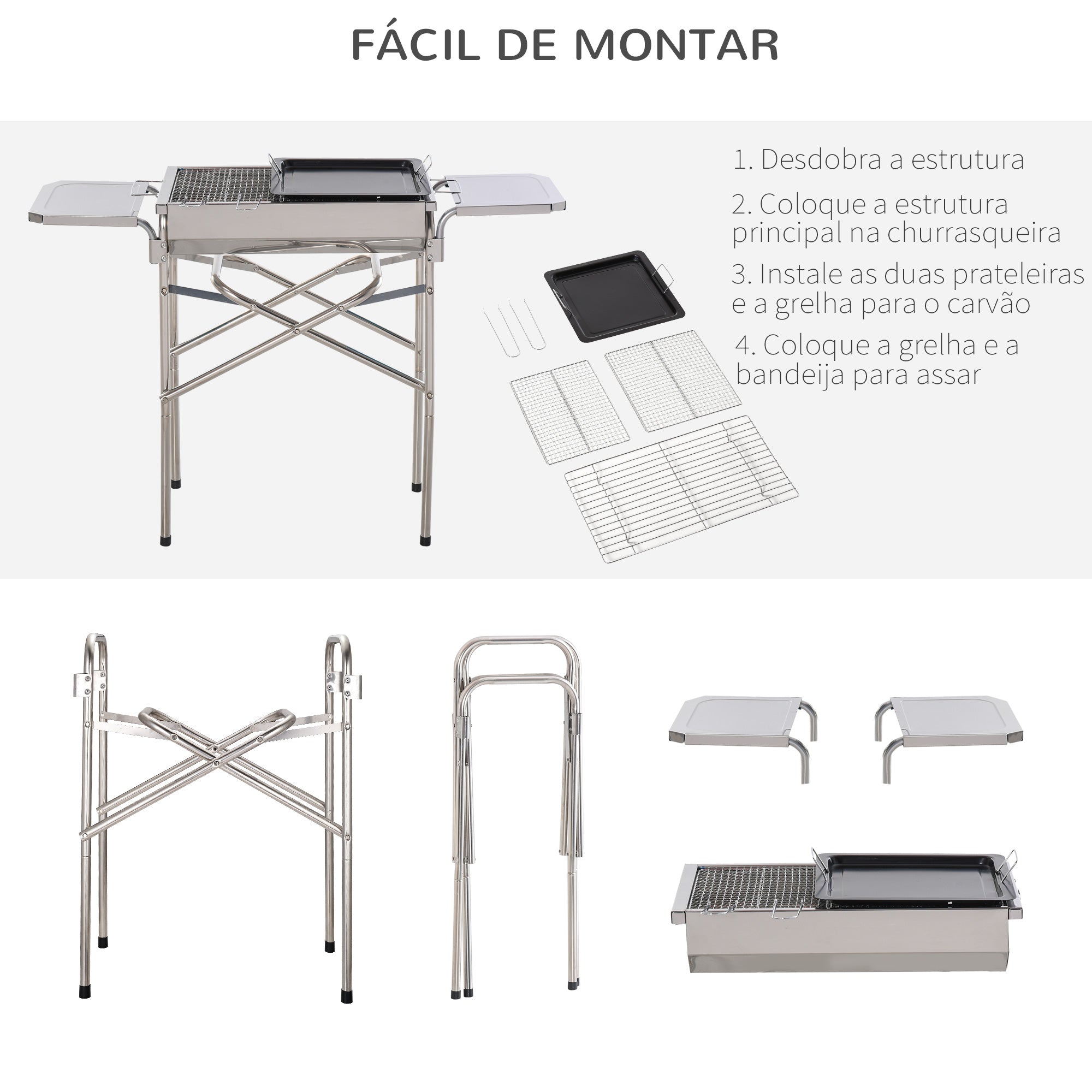 Barbecue Portátil de Aço Inoxidável Prata 104x30x68cm