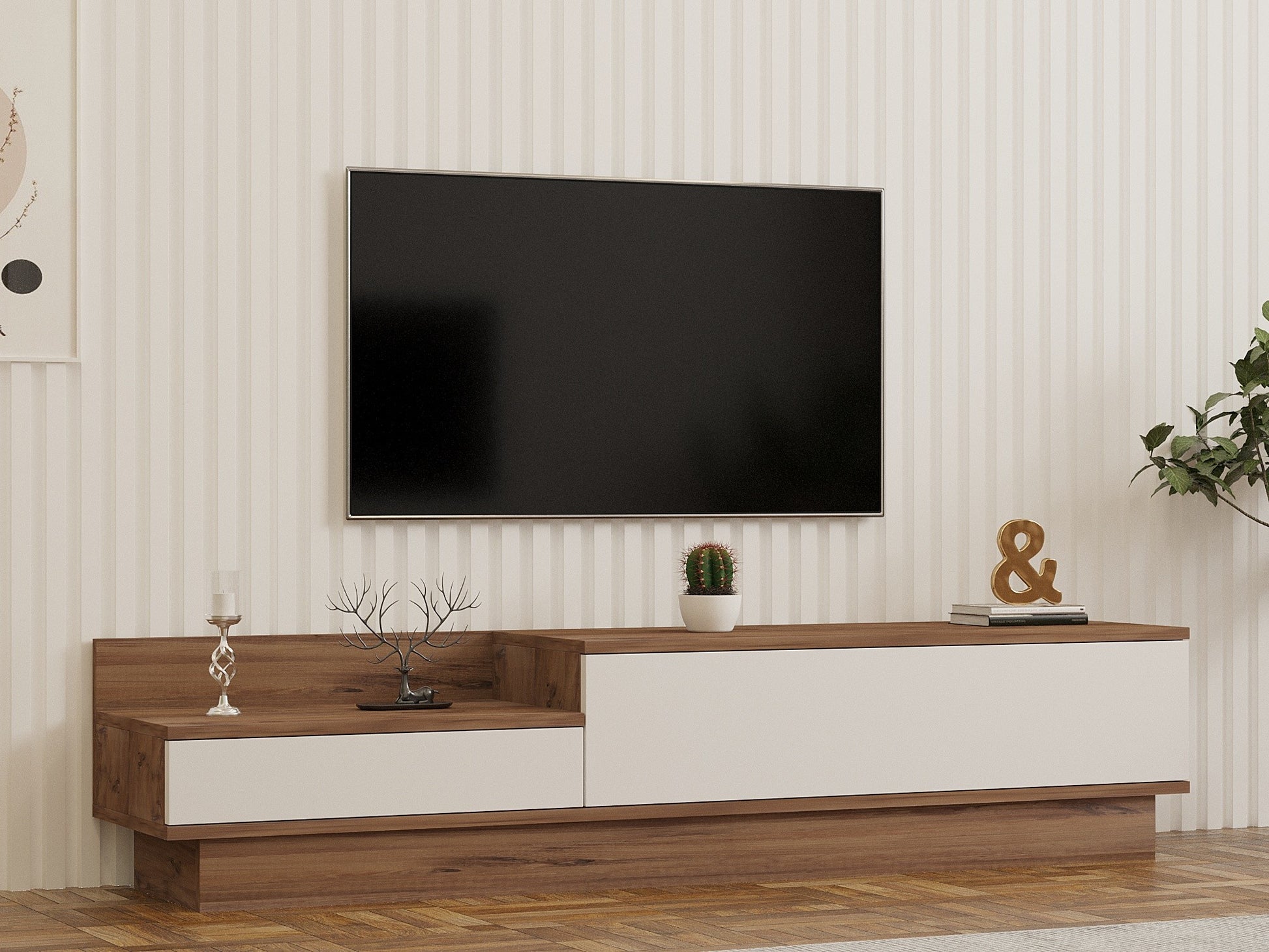 Móvel de TV escandinavo – 160 x 35 x 35 cm – Pinho Atlântico e Branco – Painéis de partículas com revestimento em melamina