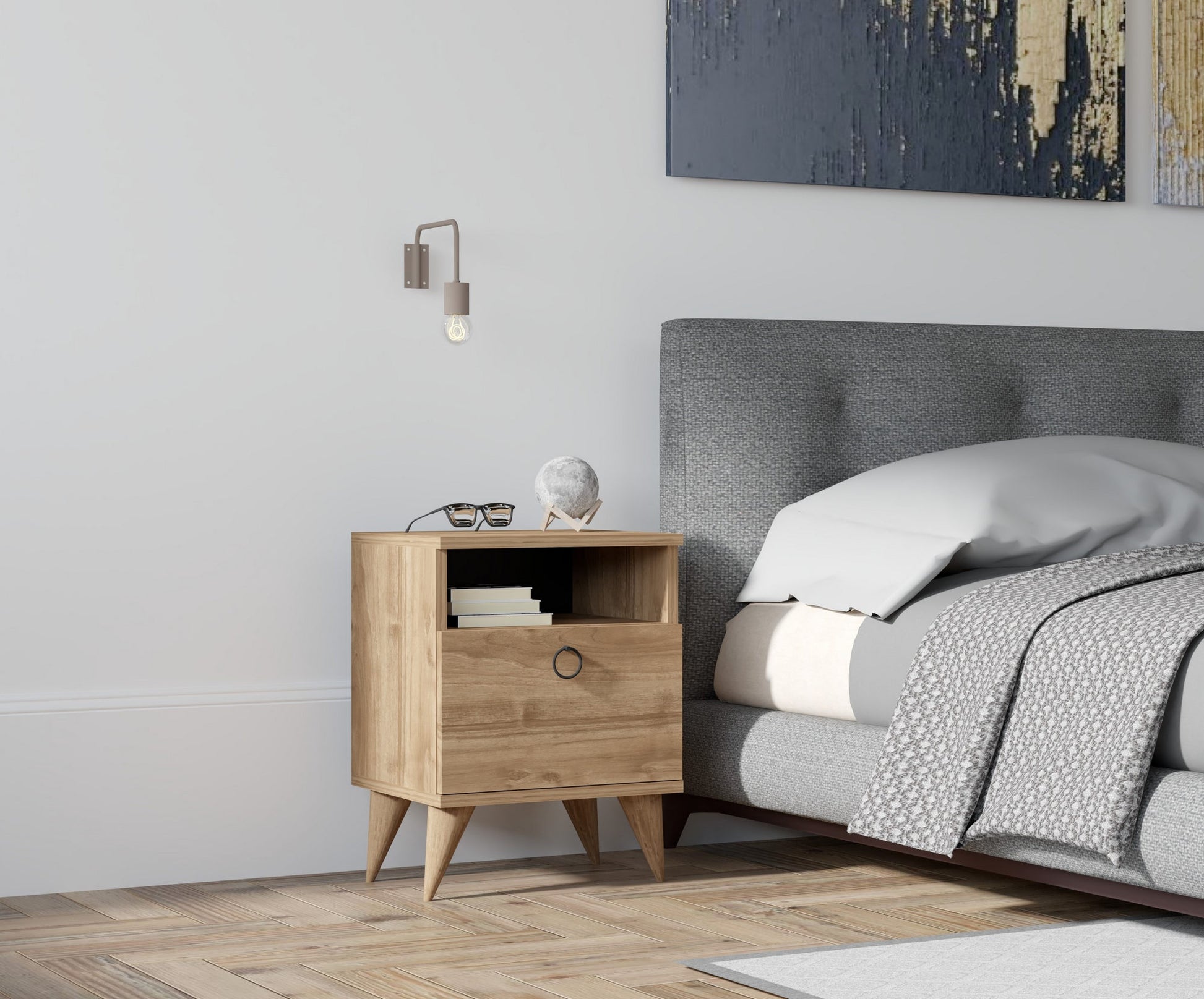 Com uma bonita cor de nogueira, a nossa mesa de cabeceira dá um toque de sofisticação a qualquer quarto. O conceito de cor sólida transmite uma sensação de tranquilidade e elegância, criando uma atmosfera serena que promove o relaxamento e um sono descansado.
