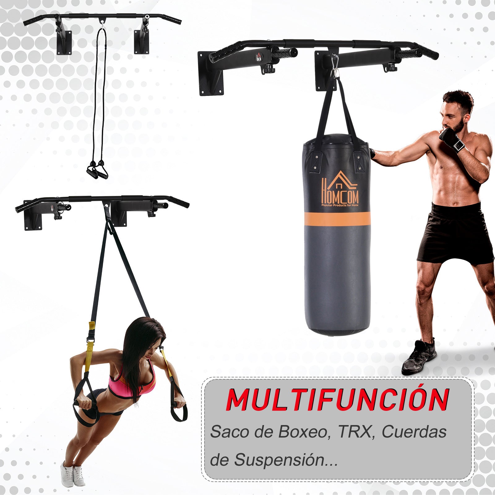 Fortaleça seus músculos em casa com a versátil Barra de Elevações de Parede. Esta barra 2-em-1 pode ser utilizada como uma barra de pull-up e suporte para sacos de boxe, oferecendo diversas opções de exercícios para a parte superior do corpo.