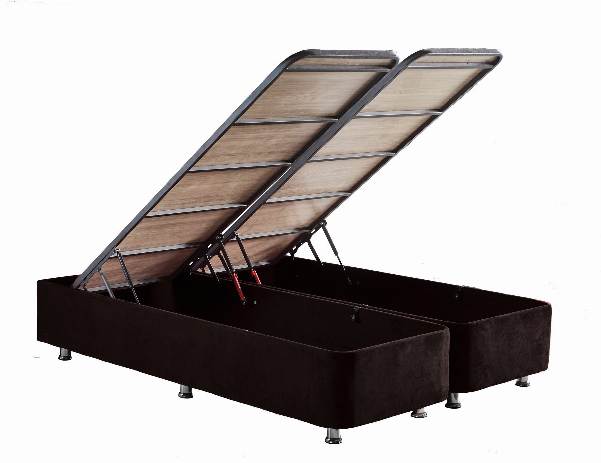 O nosso estrado de cama de casal inclui uma arca, oferecendo-lhe um amplo espaço de arrumação para os seus objectos essenciais. A cápsula de ar do estrado proporciona maior conforto e apoio, enquanto o fecho de segurança garante a sua tranquilidade.