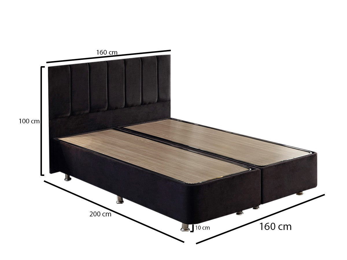 - Base da cama: Largura: 160 cm, Altura: 38 cm, Profundidade: 200 cm