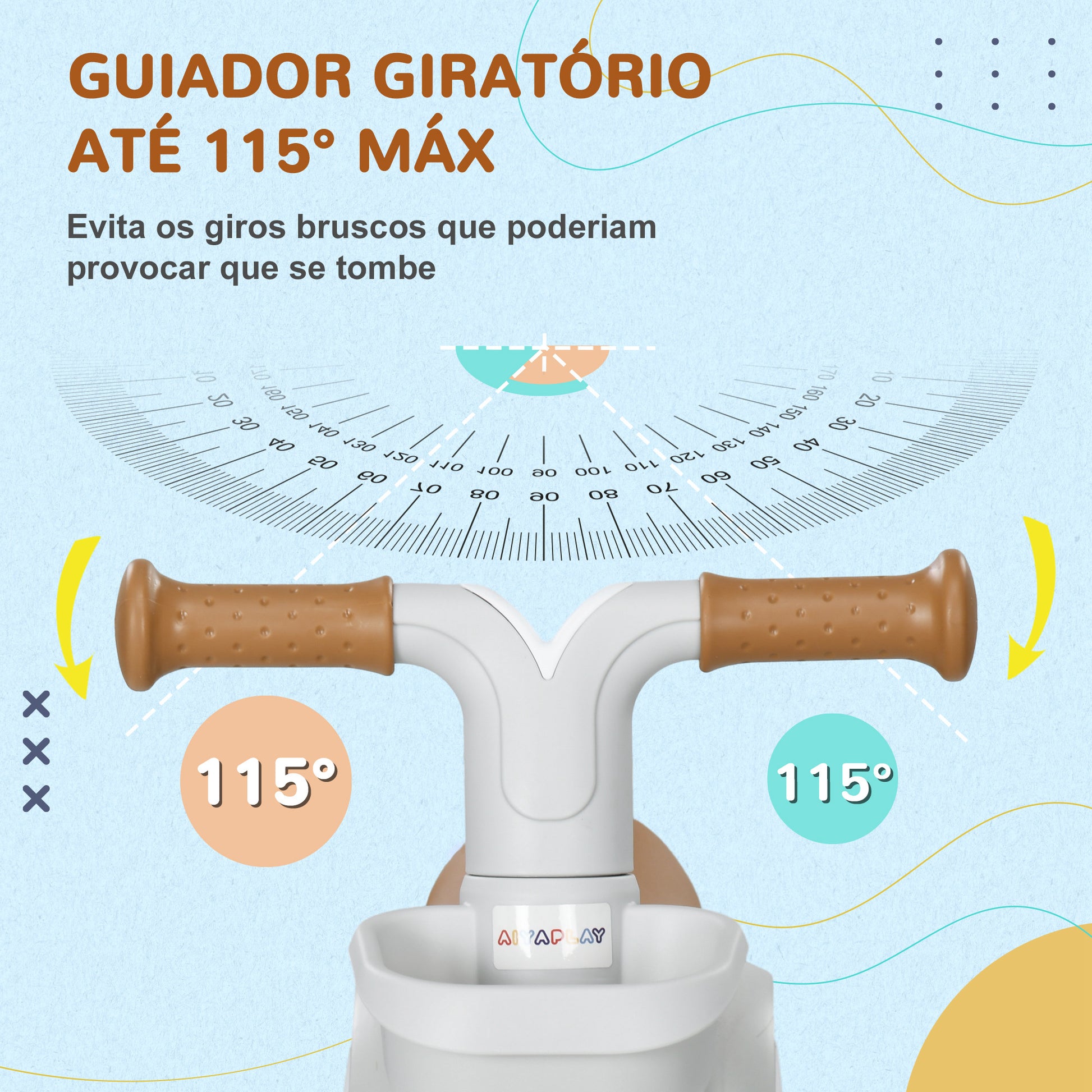 - Benefícios: Assento ajustável, pneus silenciosos, design seguro com rotação limitada do guiador e rodas protegidas