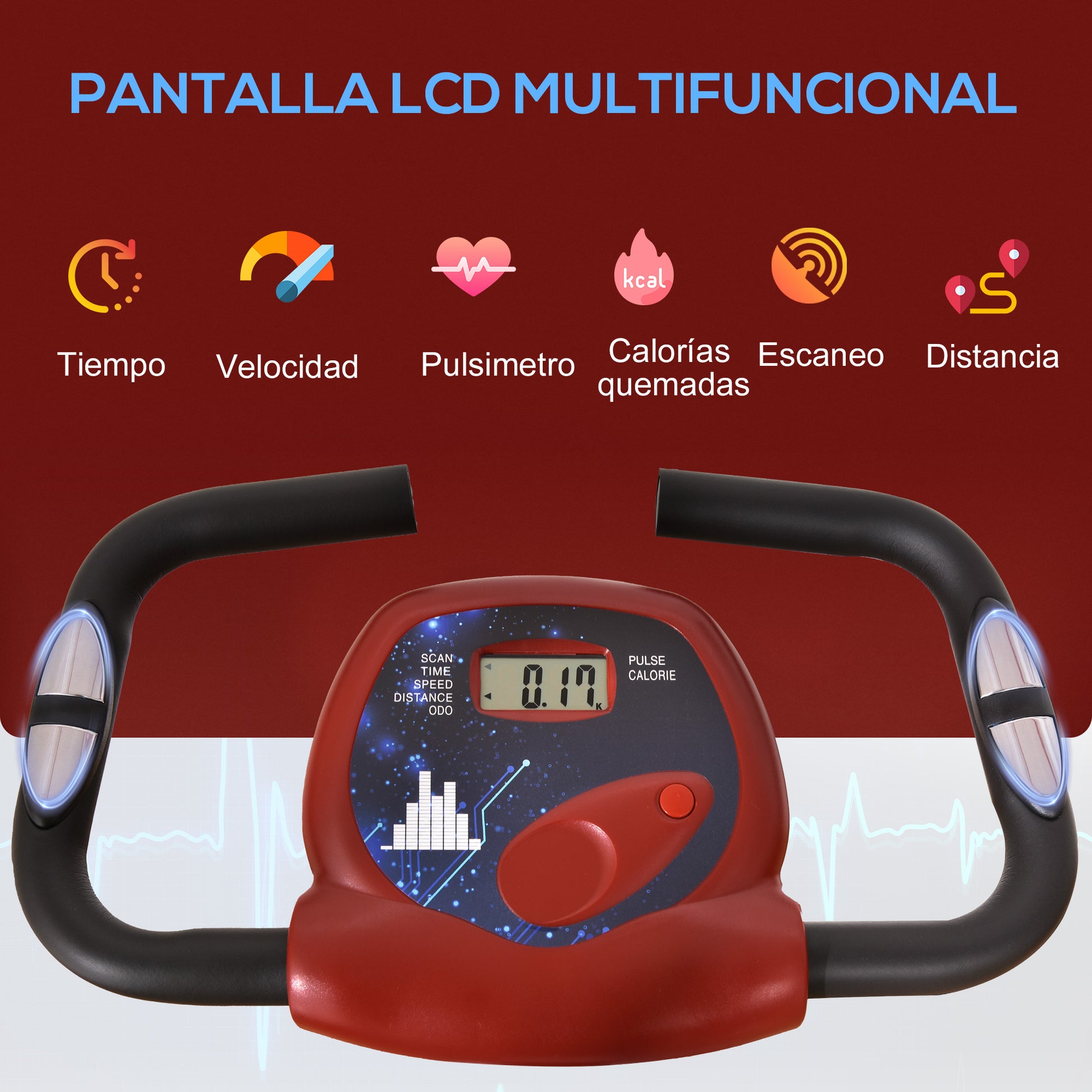 - Benefícios: Estrutura dobrável para economizar espaço, assento ajustável em 5 níveis, 8 níveis de resistência magnética, tela LCD para monitorar tempo, velocidade, distância, calorias, quilometragem total e frequência cardíaca