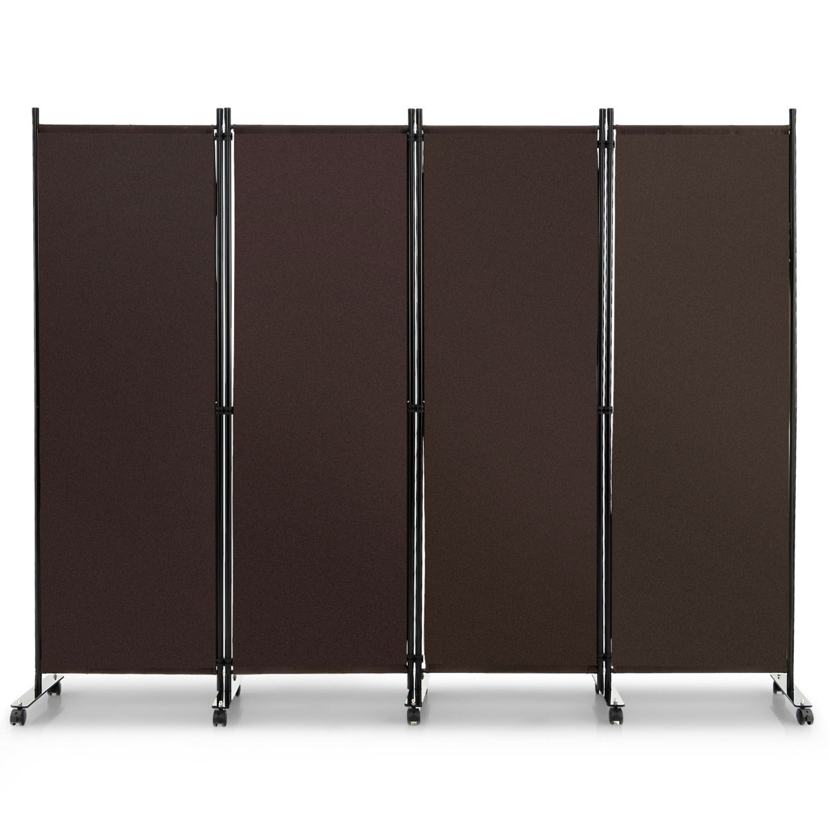 Biombo de 4 Painéis Separador de Ambientes com Rodas Telas de Privacidade Divisor para Casa Escritório 225 x 30 x 173 cm Castanho