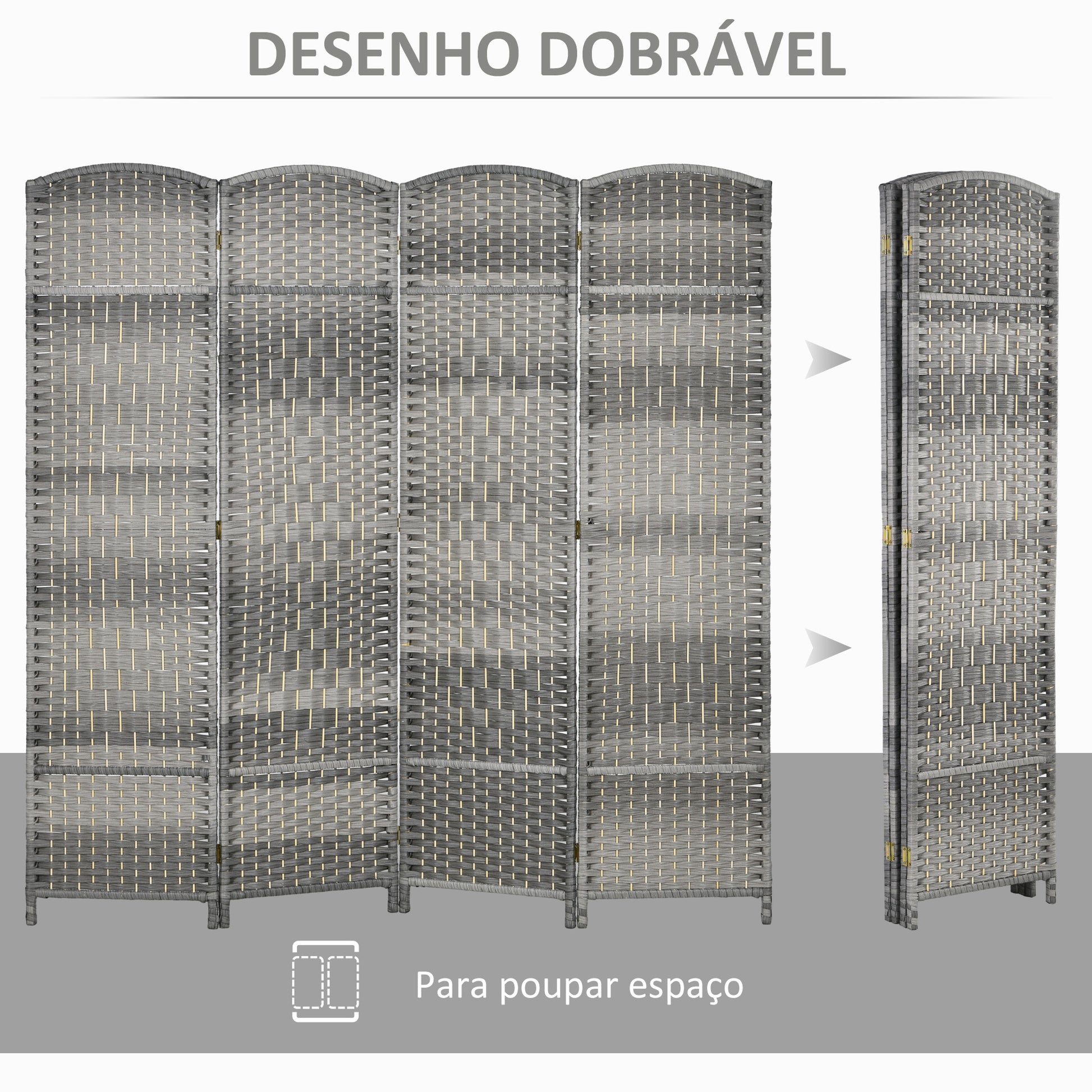 Este biombo dobrável de quatro painéis apresenta um design prático e elegante, ideal para personalizar o seu espaço com facilidade. Fabricado com materiais de alta qualidade, é perfeito para criar áreas privadas em qualquer divisão da sua casa.