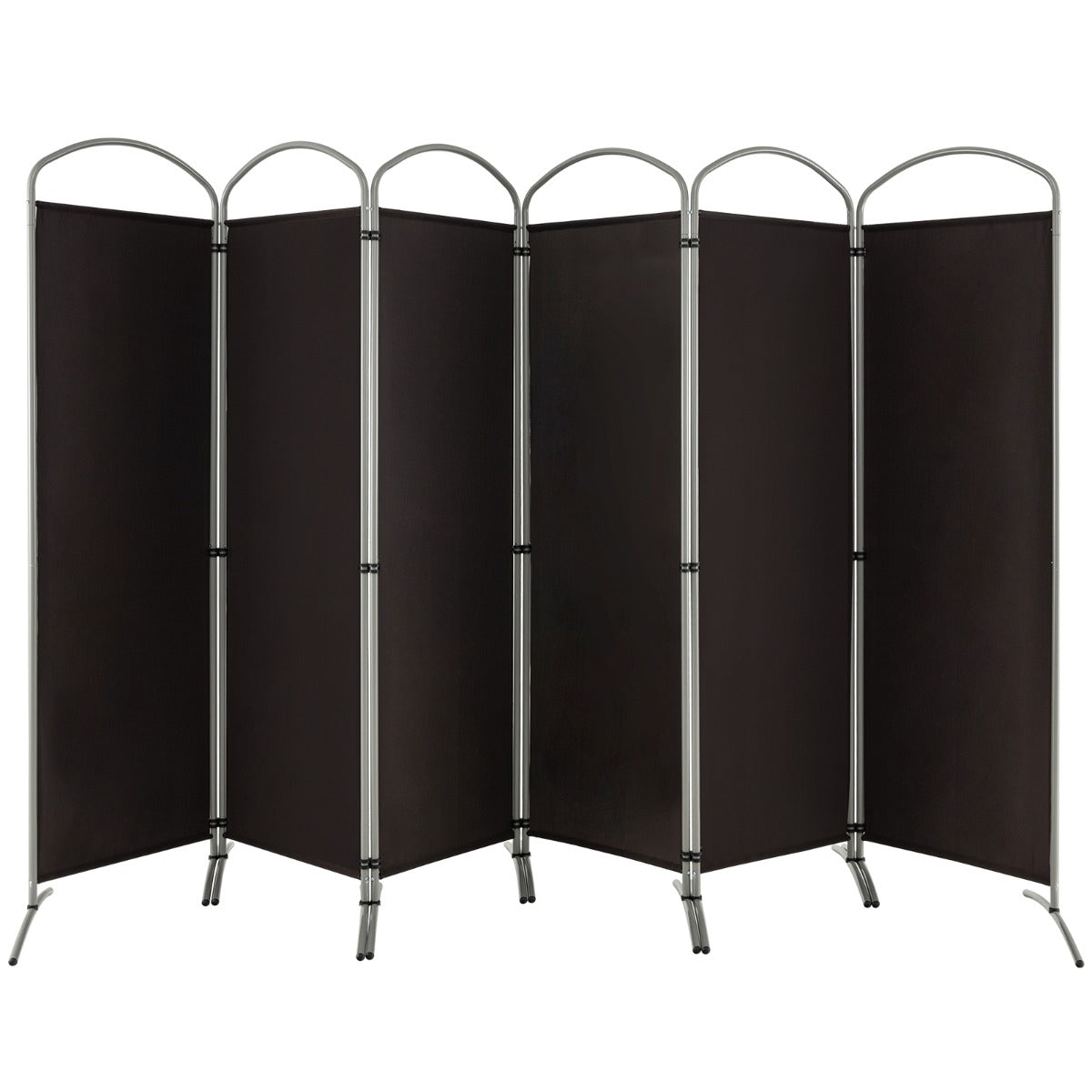 Dê um novo visual ao ambiente com este prático biombo de 6 painéis! Se precisa de um espaço privado ou de separar ambientes, os nossos biombos largos podem satisfazer as suas necessidades. Este separador de espaços possui uma estrutura de metal de alta qualidade e uma base estável para uma boa durabilidade. O metal é revestido a pó para prevenir a oxidação e corrosão. A tela é feita de material resistente ao desgaste e permite a circulação de ar. Cada painel pode ser usado individualmente ou em conjunto com fechos de ligação, facilitando o armazenamento e transporte. Adapta-se a diversos espaços interiores, como sala de estar, quarto ou escritório, sendo uma adição prática e elegante!