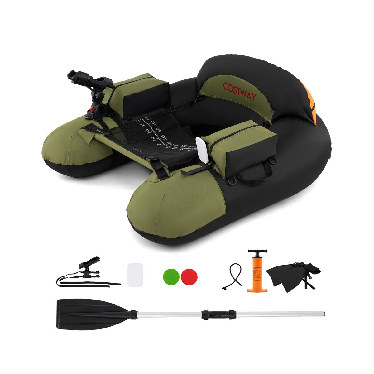 Bote de Pesca Insuflável com Remo de Alumínio Suporte de Cana de Pesca Ajustável Bolsos de Armazenamento 111 x 104 x 46 cm Verde