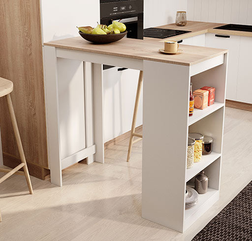 Apresentamos-te esta mesa alta que otimizará o teu espaço. Com linhas limpas e acabamento contemporâneo, encaixa bem em qualquer interior. Cria um ambiente acolhedor para as tuas refeições ou um espaço informal para receber os amigos. Aproveita os três espaços laterais para ganhar espaço extra em casa.