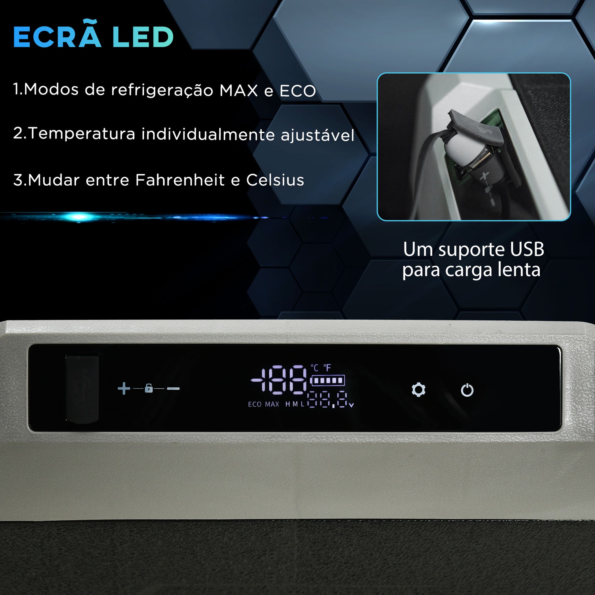 Geleira Elétrica Portátil – 40L – Preto e Cinza – Polipropileno e PEAD