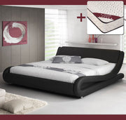Cama de casal com colchão Texas – 150x190cm – preta – madeira e polipele PU