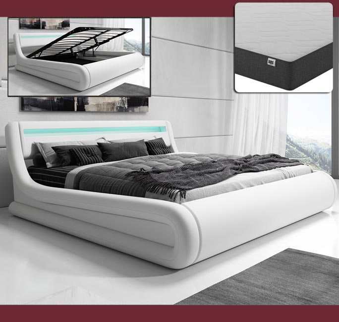 - Incluído no preço: Luzes LED, toda a estrutura da cama (cabeceira, peseira, laterais, dobradiças e estrado de ripas), colchão e parafusos.