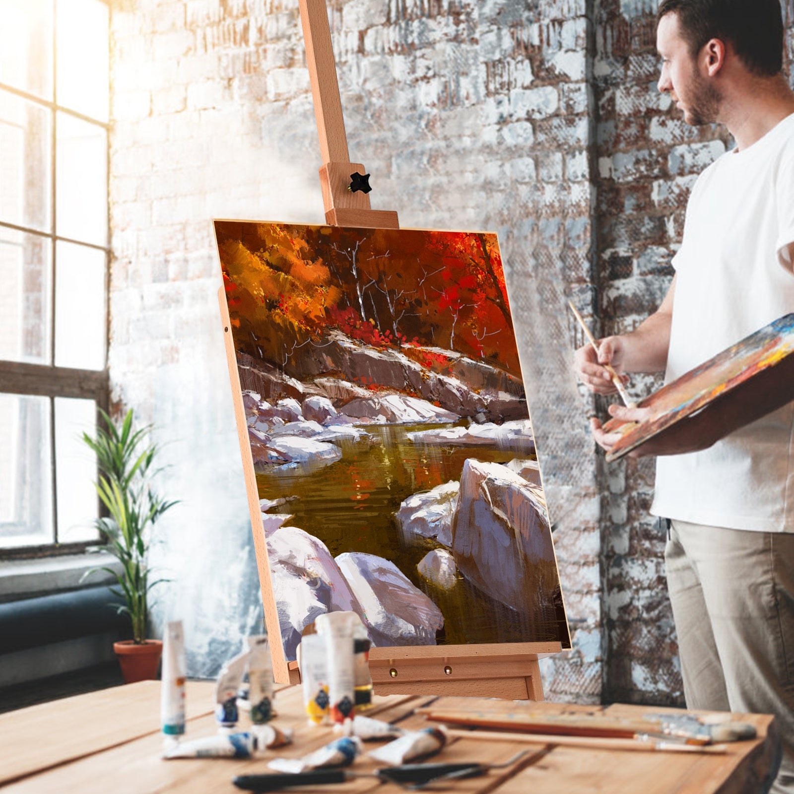- Versátil: o cavalete de madeira é ideal para artistas, estudantes e adultos. Seja qual for o teu estilo, desde esboços a aguarelas, de pinturas a óleo a guaches, podes utilizar este cavalete. Além disso, não pode ser utilizado para expor cartazes em estabelecimentos comerciais.