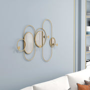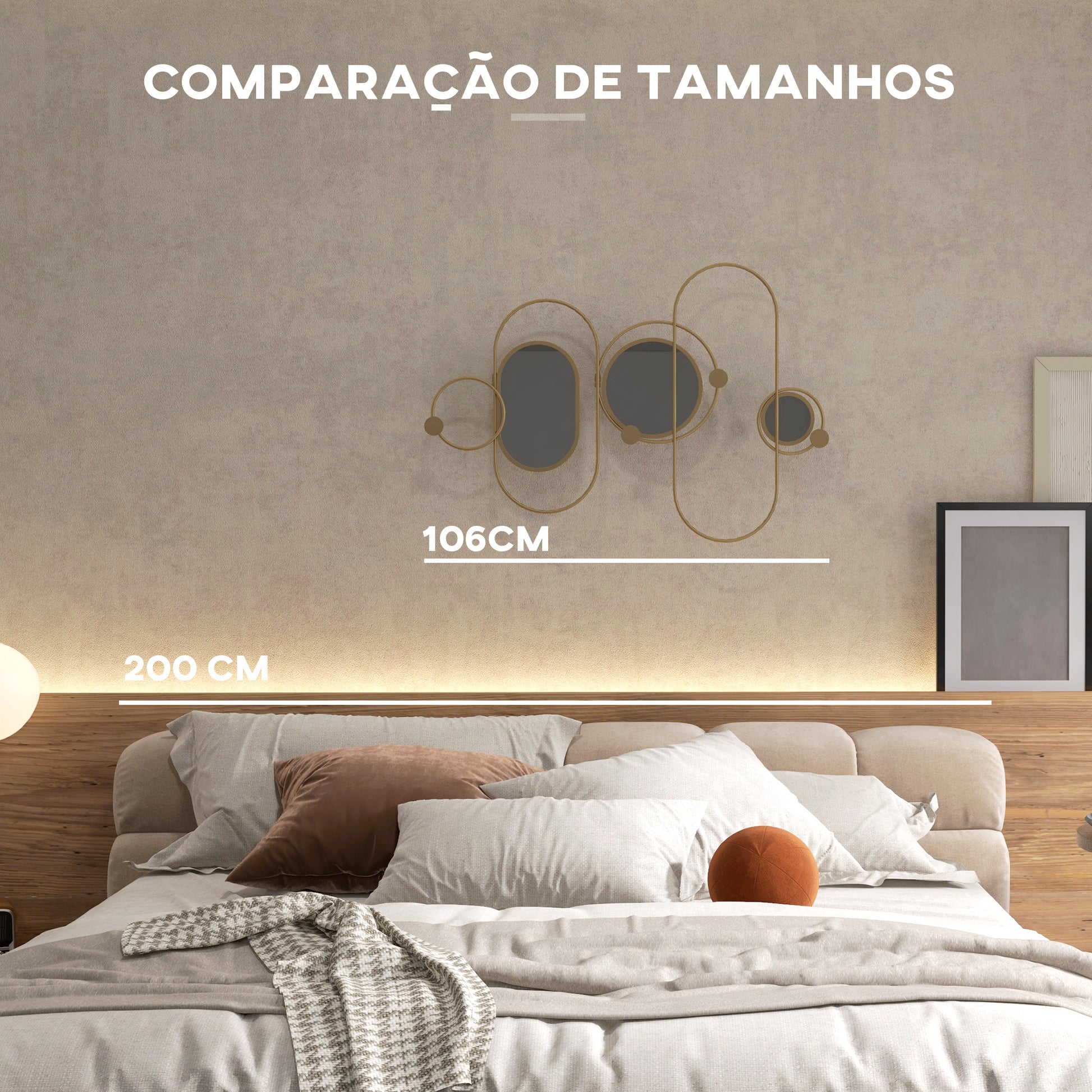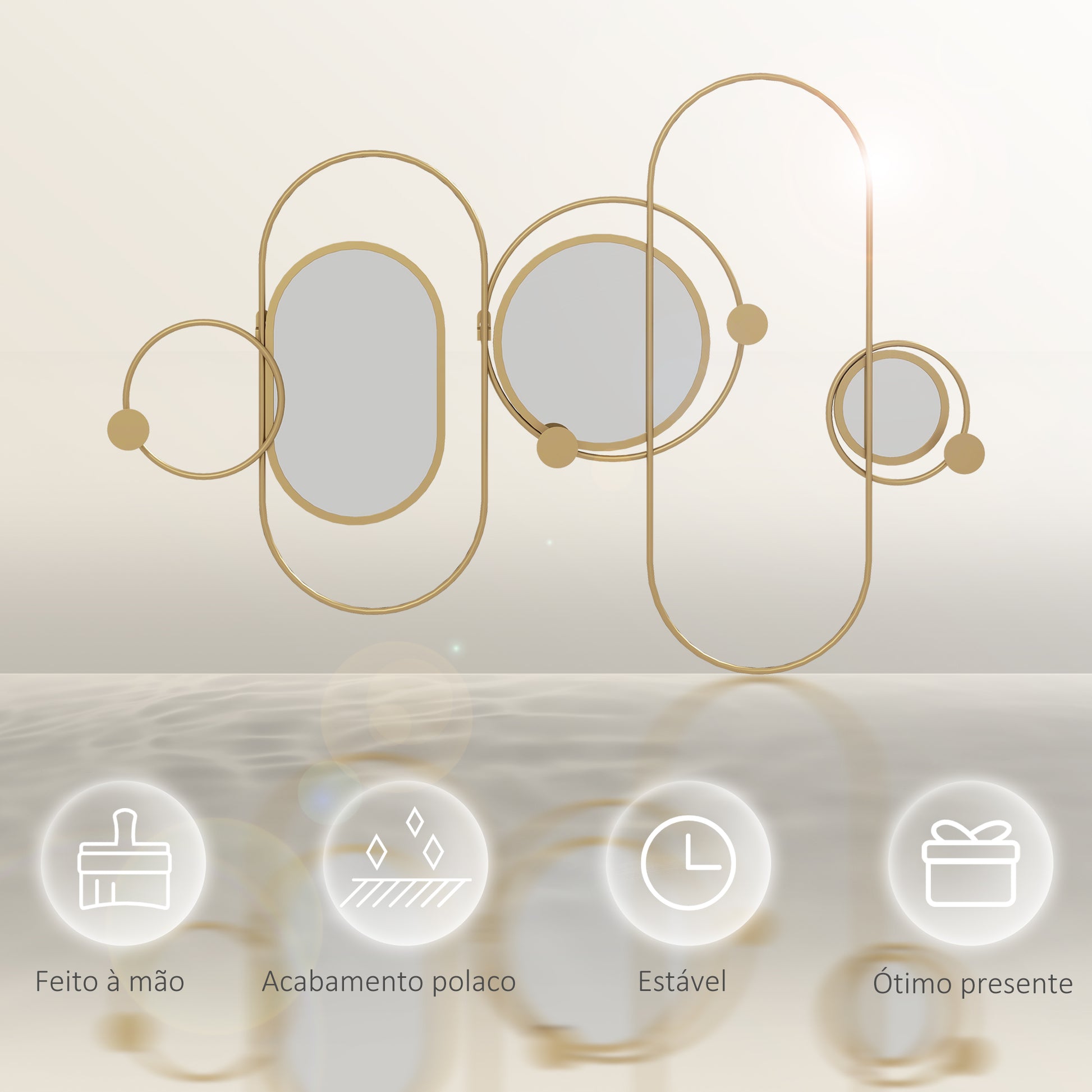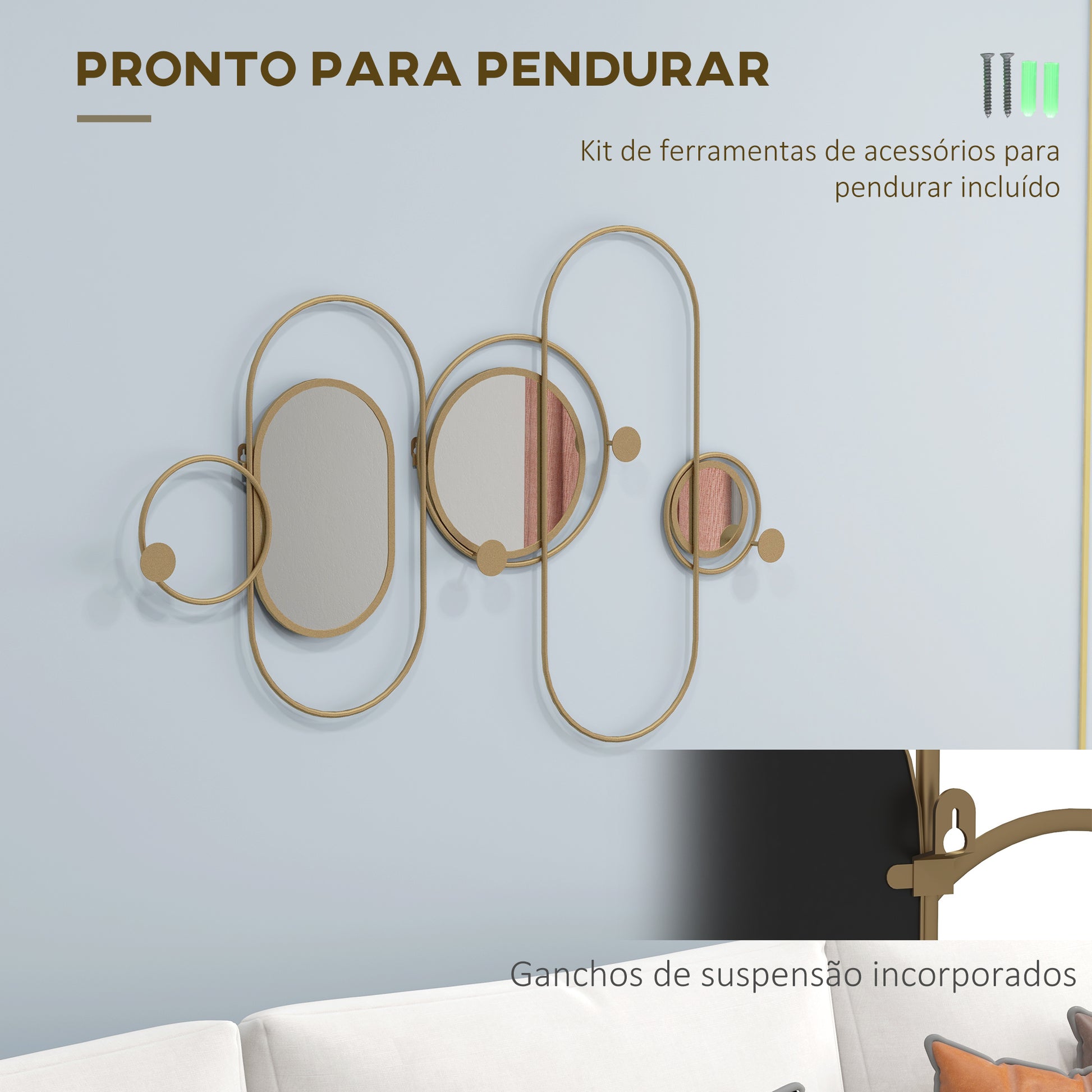 Cabide de Parede com 4 Ganchos e 3 Espelhos Decorativos 106x71 cm - Cor Ouro