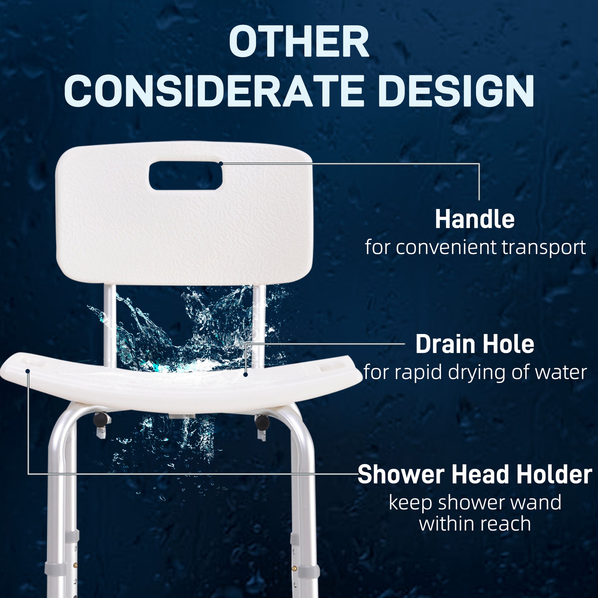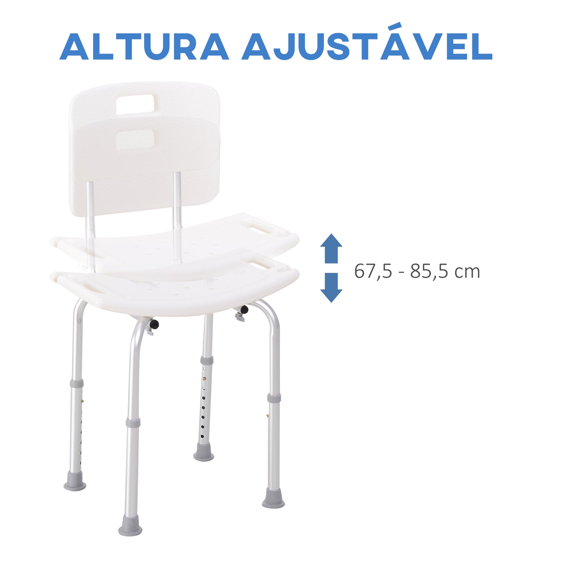 Banco de Duche Antiderrapante 50,6x43x71-88 cm - Branco e Prata