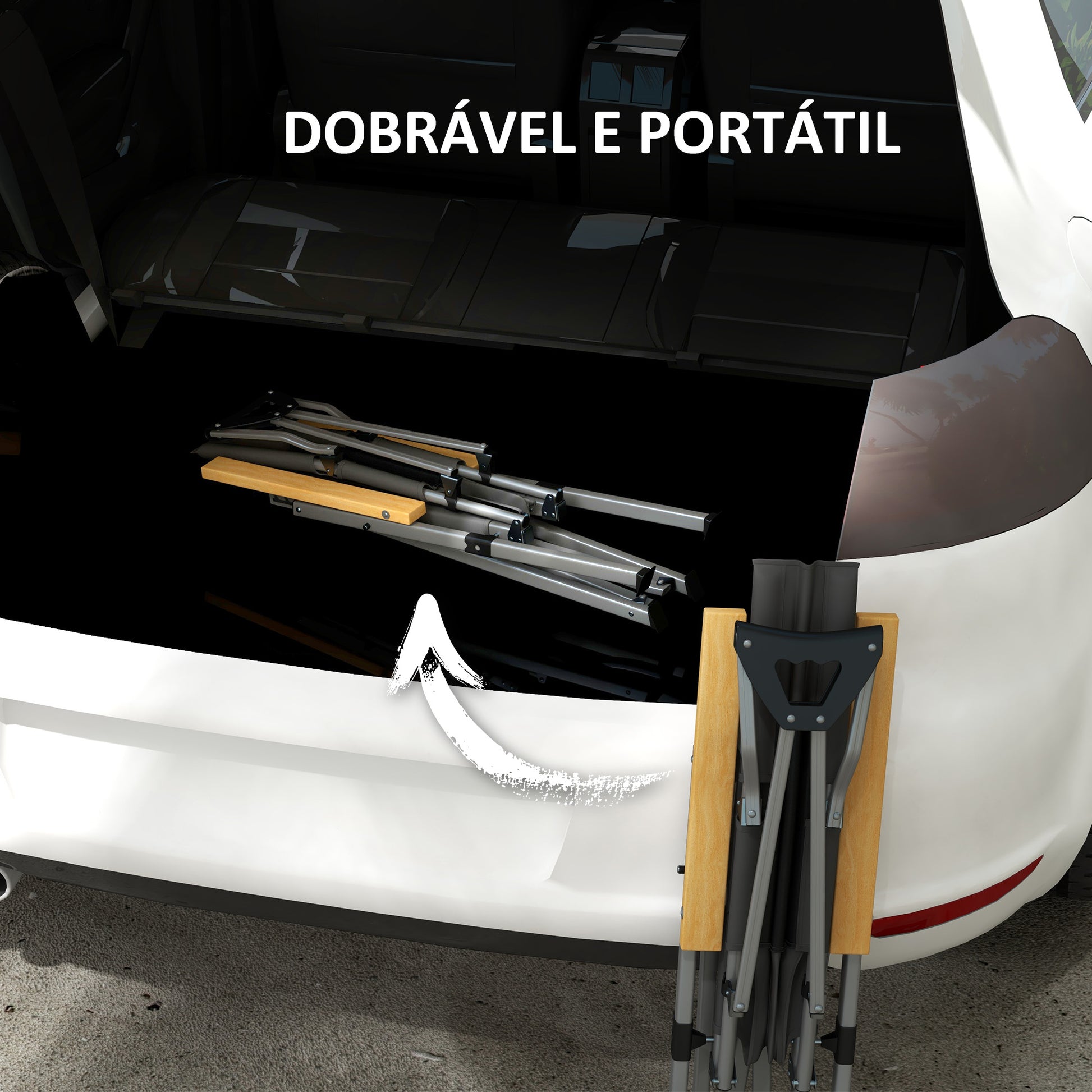 - Benefícios: Encosto ajustável, apoios de braço de madeira, bolsa de transporte incluída