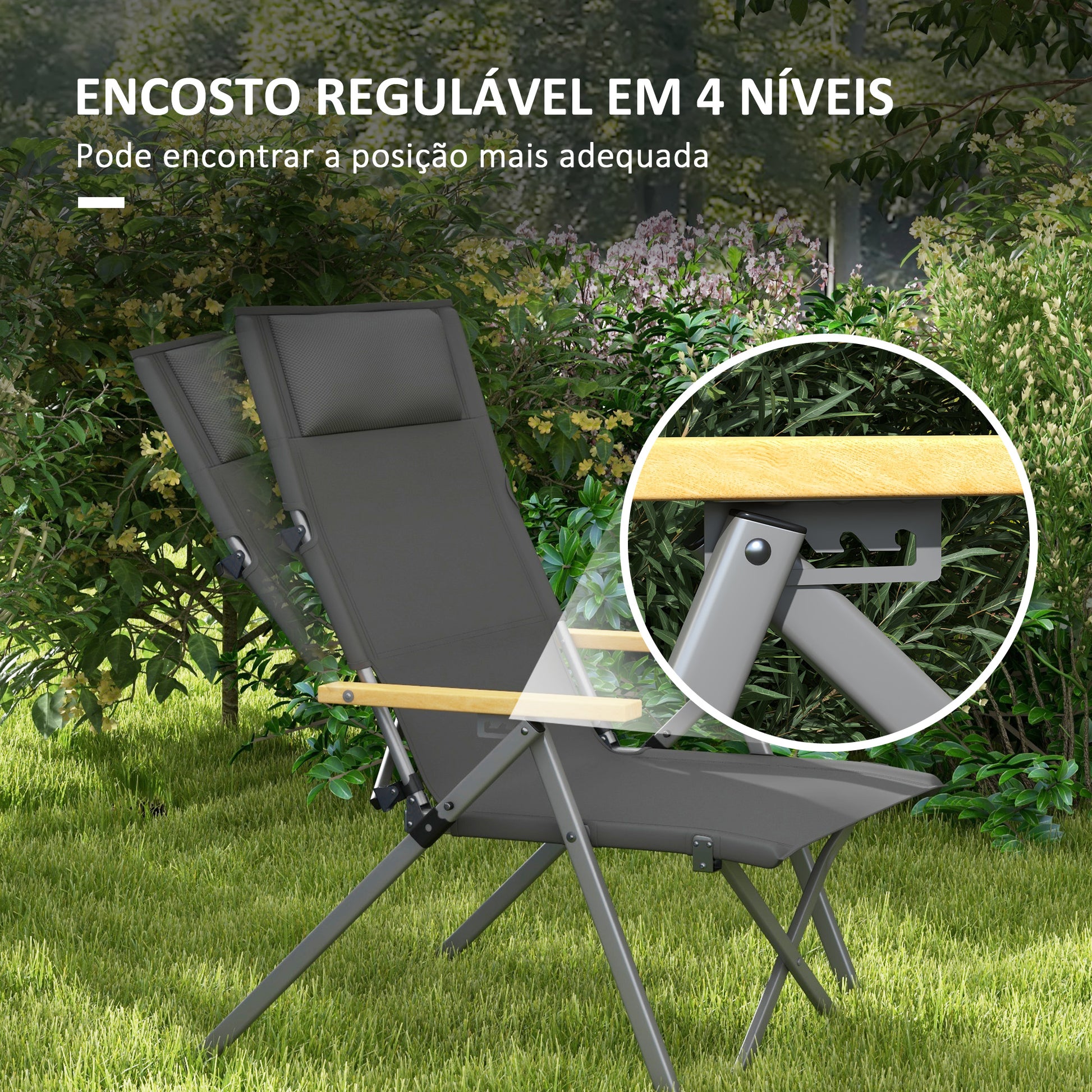 Desfrute do ar livre com conforto e estilo com esta cadeira de campismo dobrável em cinza escuro. Com um encosto ajustável em 4 posições e apoios de braço de madeira, esta cadeira é perfeita para relaxar em qualquer aventura ao ar livre.