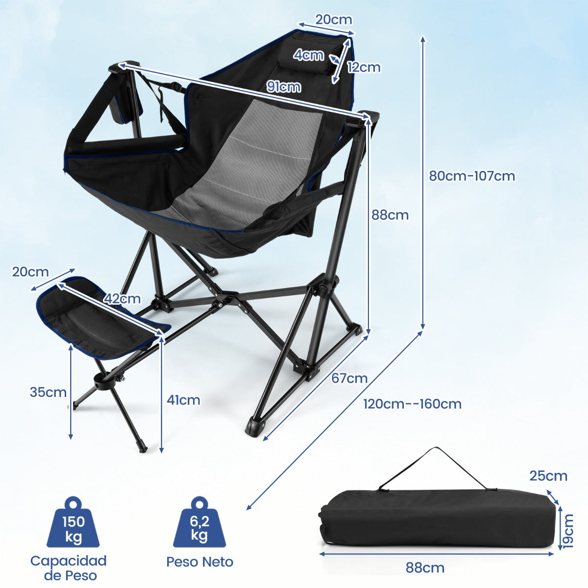 O encosto ajustável permite-lhe encontrar a posição perfeita para a máxima relaxação. Quer queira sentar-se direito ou deitar-se para uma sesta, esta cadeira adapta-se às suas necessidades. A estrutura resistente suporta o seu corpo enquanto proporciona o máximo conforto, permitindo-lhe desfrutar de horas de descanso. Para maior conforto, a cadeira possui um descanso para pés removível e retrátil, que lhe permite esticar as pernas e elevar os pés. Esta característica proporciona alívio e relaxamento após um longo dia de caminhadas, campismo ou exploração. Quando chegar a hora de arrumar, basta dobrar a cadeira e colocá-la na bolsa de transporte incluída. O seu design leve e compacto facilita o transporte e armazenamento, permitindo-lhe levá-la para onde quer que as suas aventuras o levem.