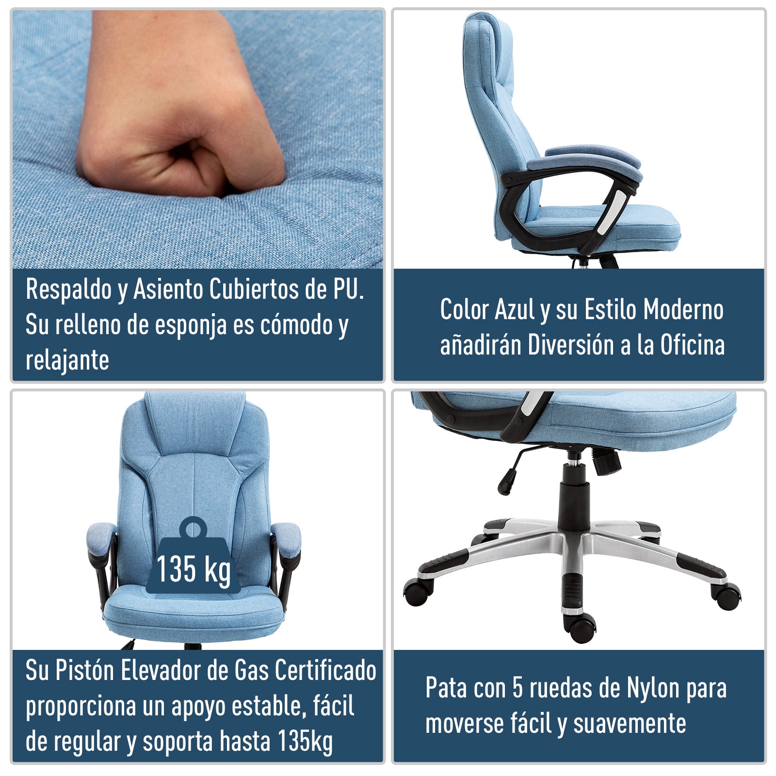 Cadeira de Escritório Ergonómica – 66x75x120cm – Azul Claro – Espuma, metal e tecido de linho PU