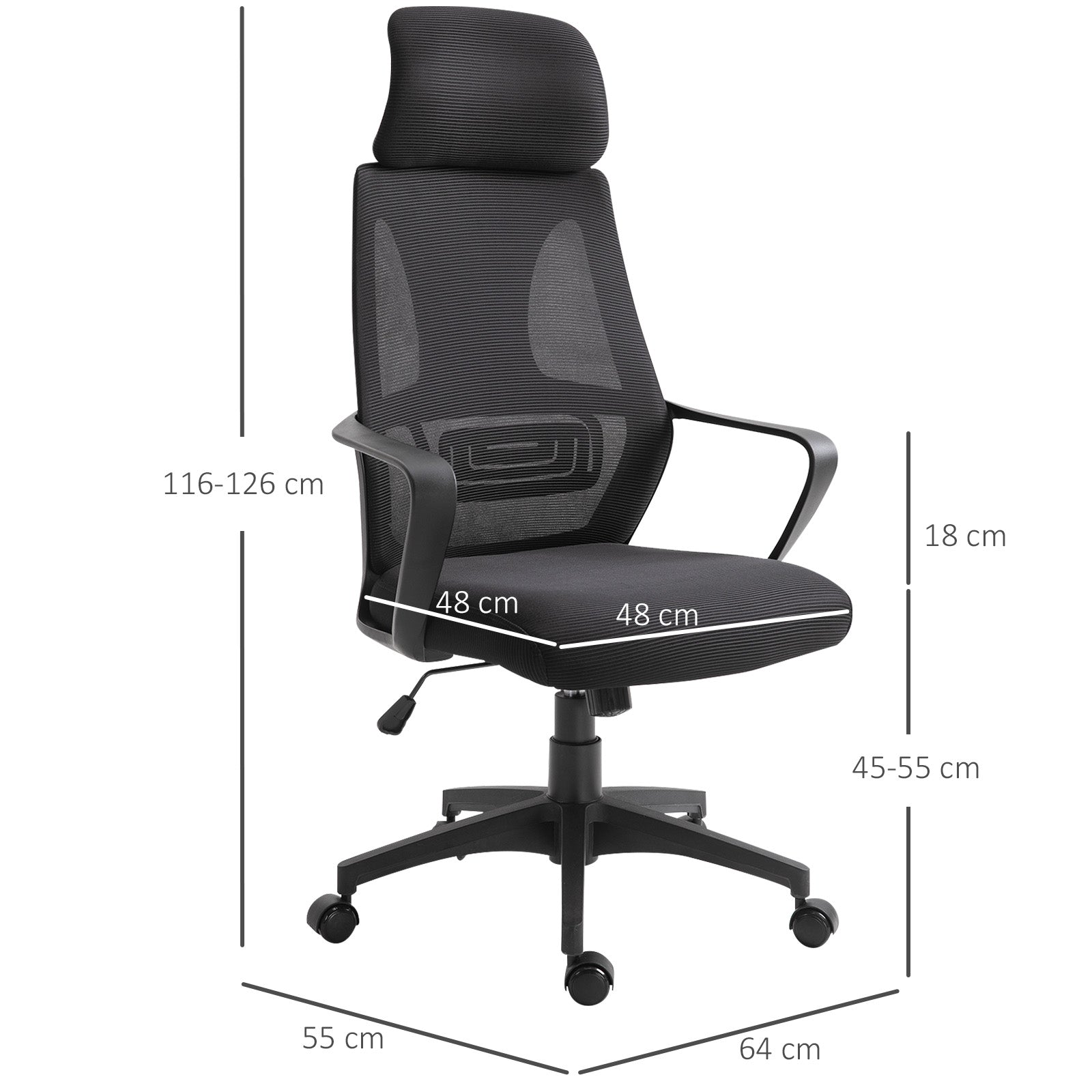 Cadeira de Escritório Ergonômica com Encosto de Cabeça Ajustável 64x58x116-126cm Preto