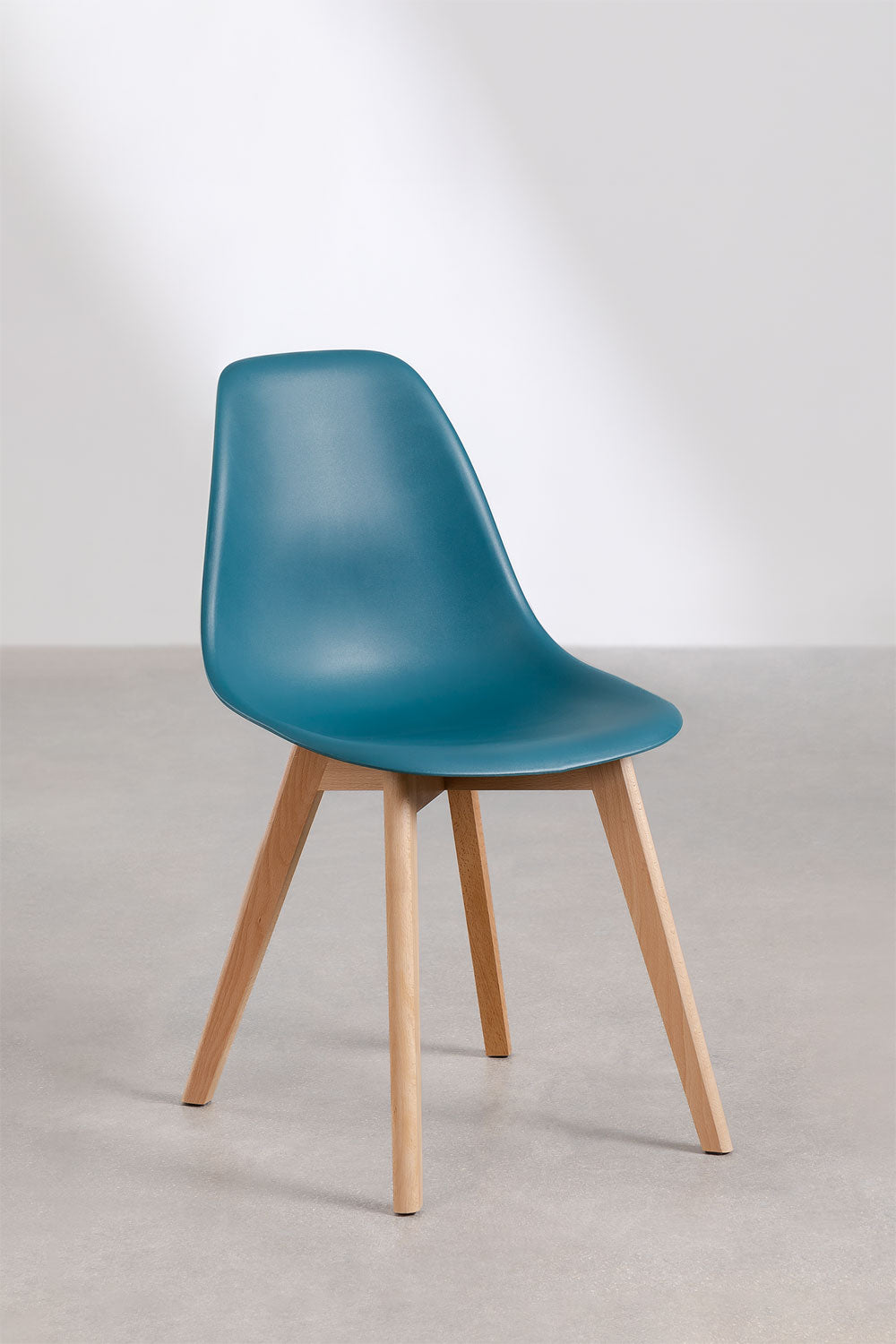 Cadeira de Jantar – Scand Nordic em Polipropileno e Madeira de Faia - Cor Azul Turquesa Intenso