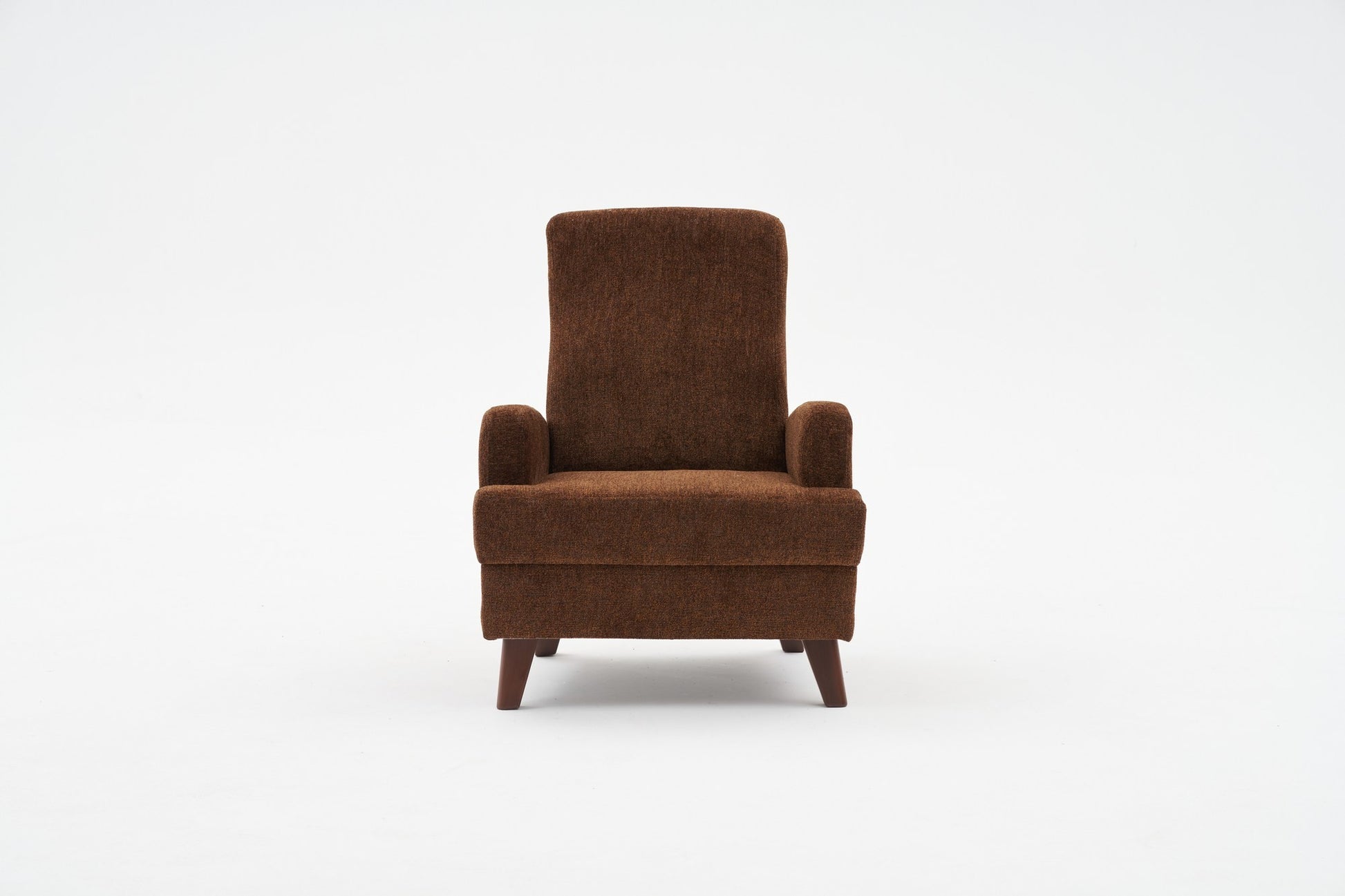 Poltrona Elegante – 76x91x87 cm – Castanho – Madeira Maciça e Tecido de Poliester