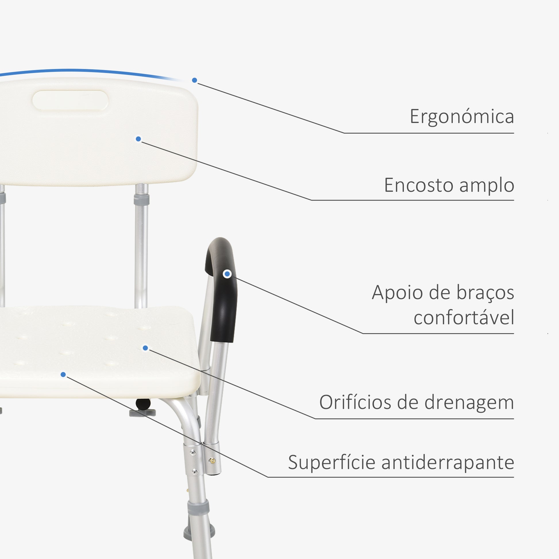 Facilite a vida com a Cadeira para Duche Antiderrapante em Branco. Perfeita para idosos, pessoas com mobilidade reduzida ou lesões, esta cadeira ajustável em altura em 6 níveis é um complemento ideal para o duche ou banheira.