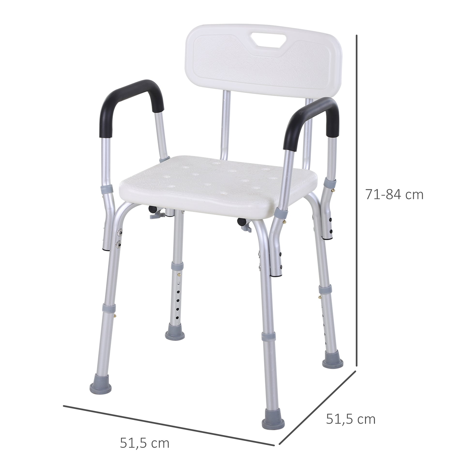 Banco para Duche Antiderrapante – 51,5x51,5x71-84 cm – Branco – Alumínio e PE