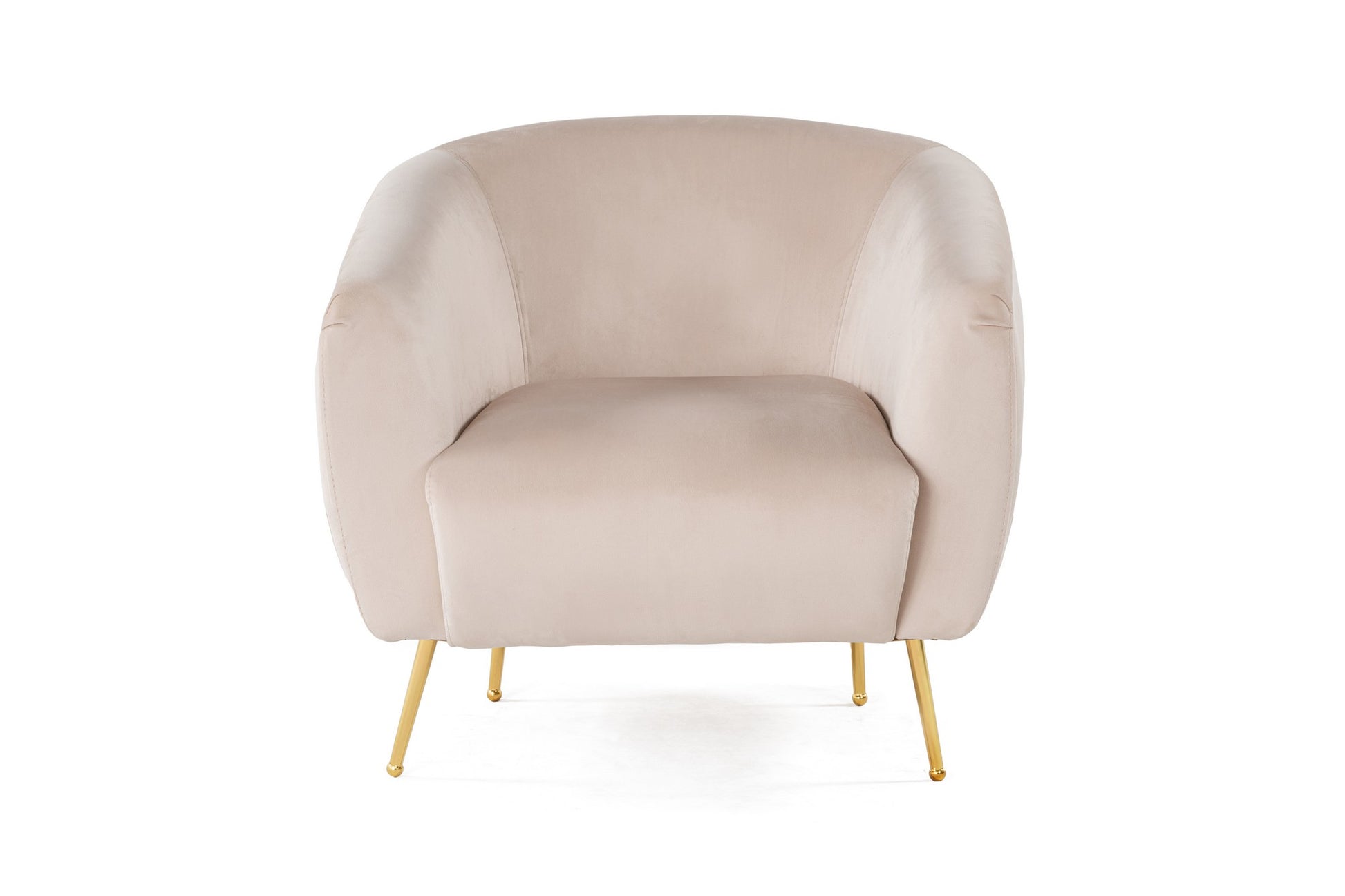 Poltrona Elegante com Pernas de Metal Dourado, Tecido Bege, 70x82x82 cm | Estrutura em Madeira de Faia, Almofadas de Espuma Macia e Penas, Inclui 1 Travesseiro, Lavável a Seco