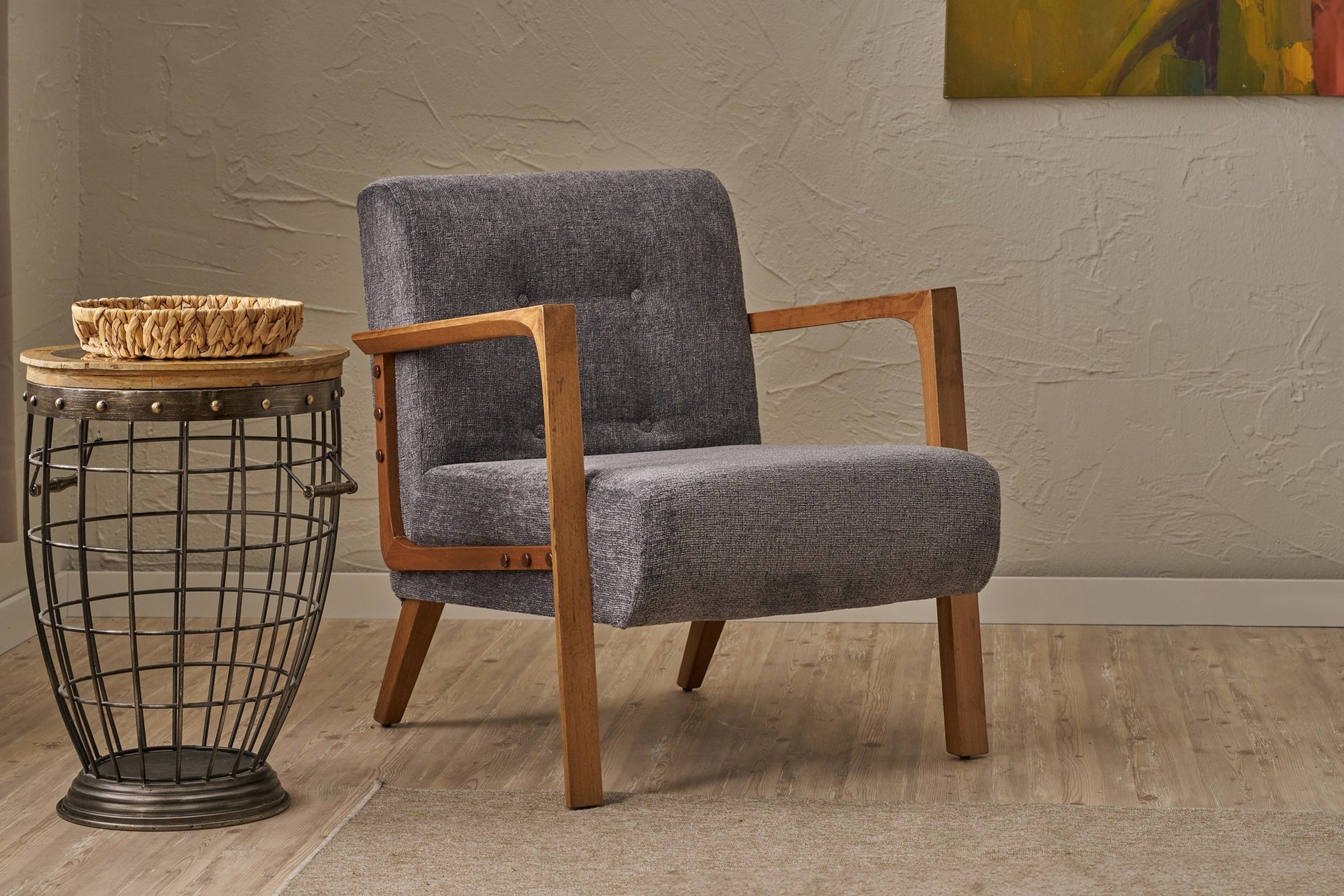Poltrona – 69 x 80 x 83 cm – Cinza – Madeira de Faia e Tecido Chenille