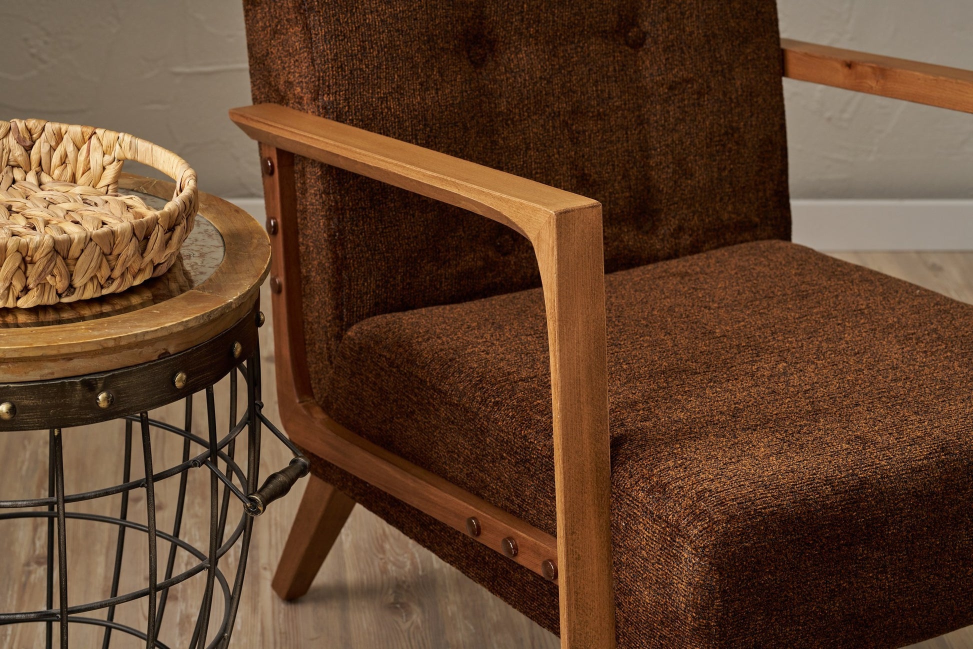 Poltrona Elegante – 69x80x83 cm – Castanho – Tecido Chenille e Madeira de Faia