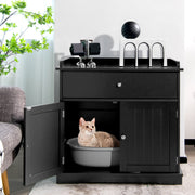 Caixa de Areia para Gatos Casa para Gatinhos com Caixa 2 Portas Móvel de Cabeceira Sanita Mesa Auxiliar 76 x 53 x 74 cm Preto