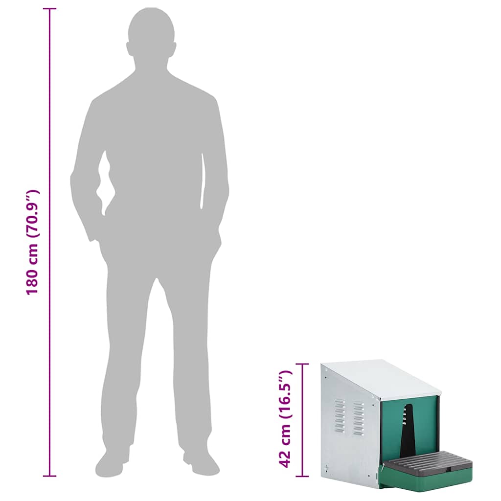 O nestomatic é feito de chapa de metal revestida a zinco e plástico ABS, sendo duradouro e resistente aos raios UV. A tampa do contentor de recolha pode ser desdobrada para ter acesso aos ovos. Este ninho de postura para aves tem um suave tapete de nidificação feito de PE, tornando-o resistente às bactérias e proporcionando um alto nível de conforto para as aves! As cortinas do ninho de postura para aves domésticas garantem à galinha um local escuro e abrigado para pôr ovos.