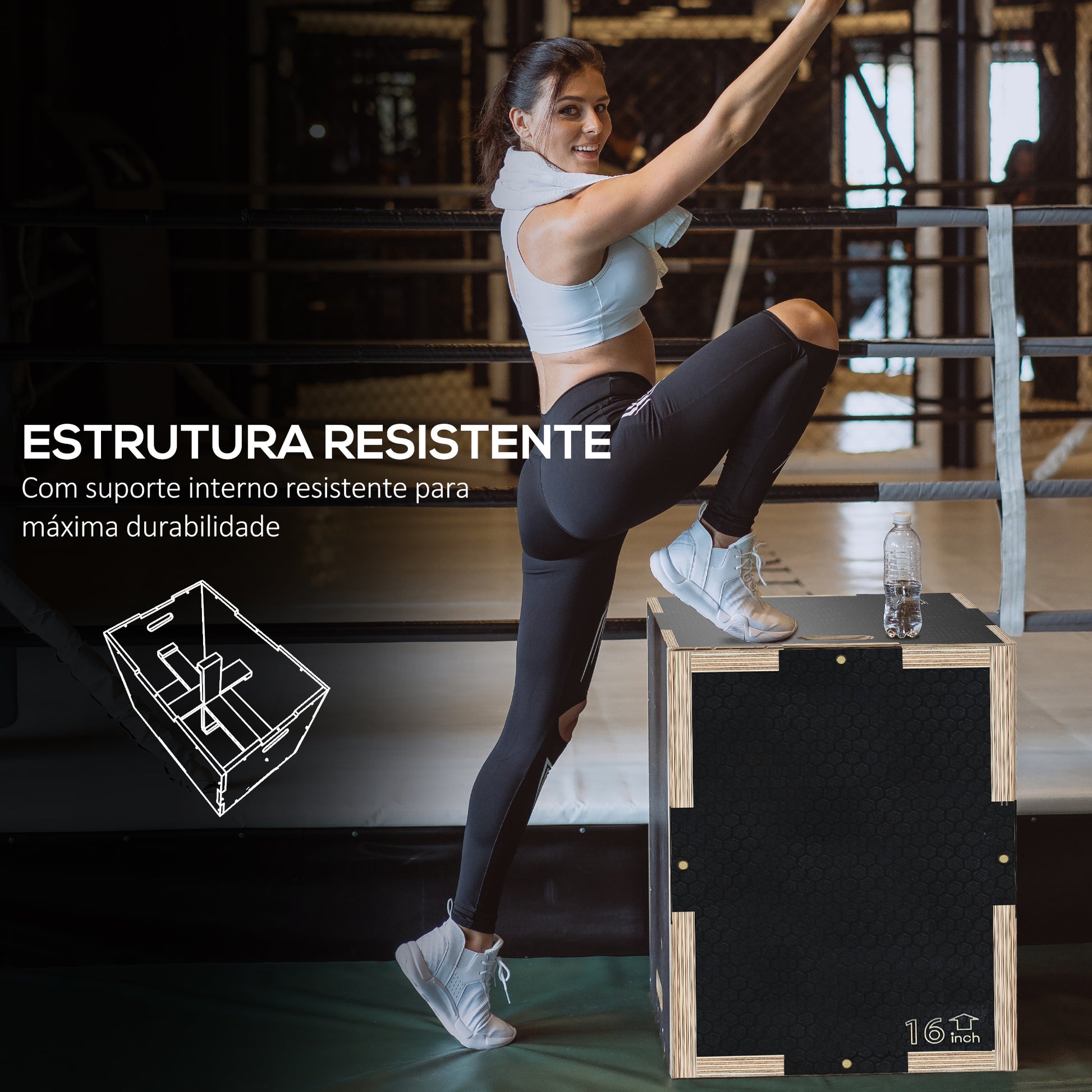 Aproveite a resistência e a estabilidade desta caixa de saltos, suportando até 120 kg de peso. Comece já a elevar o seu treino com a Caixa Pliométrica Preto!