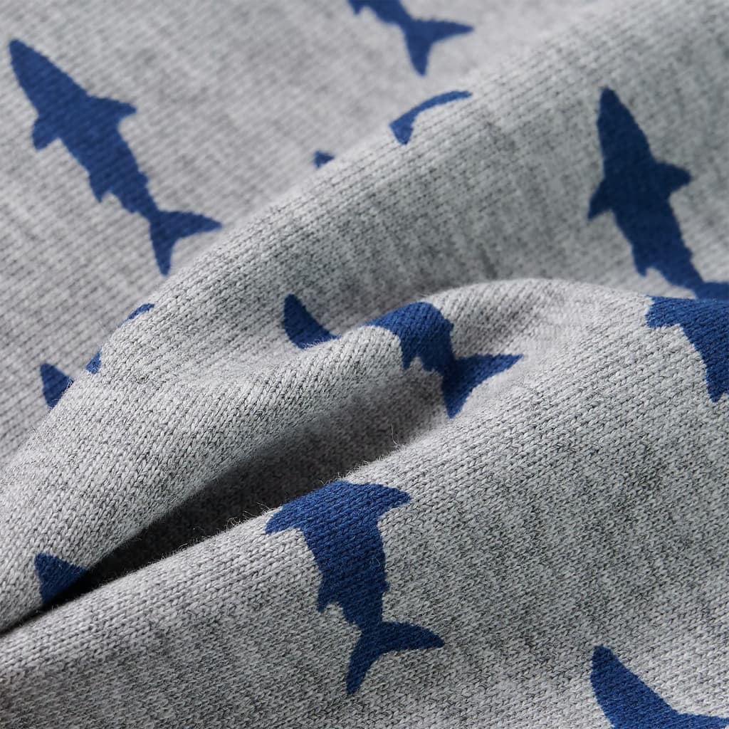 Os calções de criança apresentam tubarões por toda parte. Este calção para criança possui uma cintura elástica com cordão, um bolso falso na parte de trás, dois bolsos laterais e uma bainha cosida com prega. Os calções infantis são feitos de um material macio que inclui 90% algodão e 10% viscose, proporcionando maior conforto e respirabilidade.