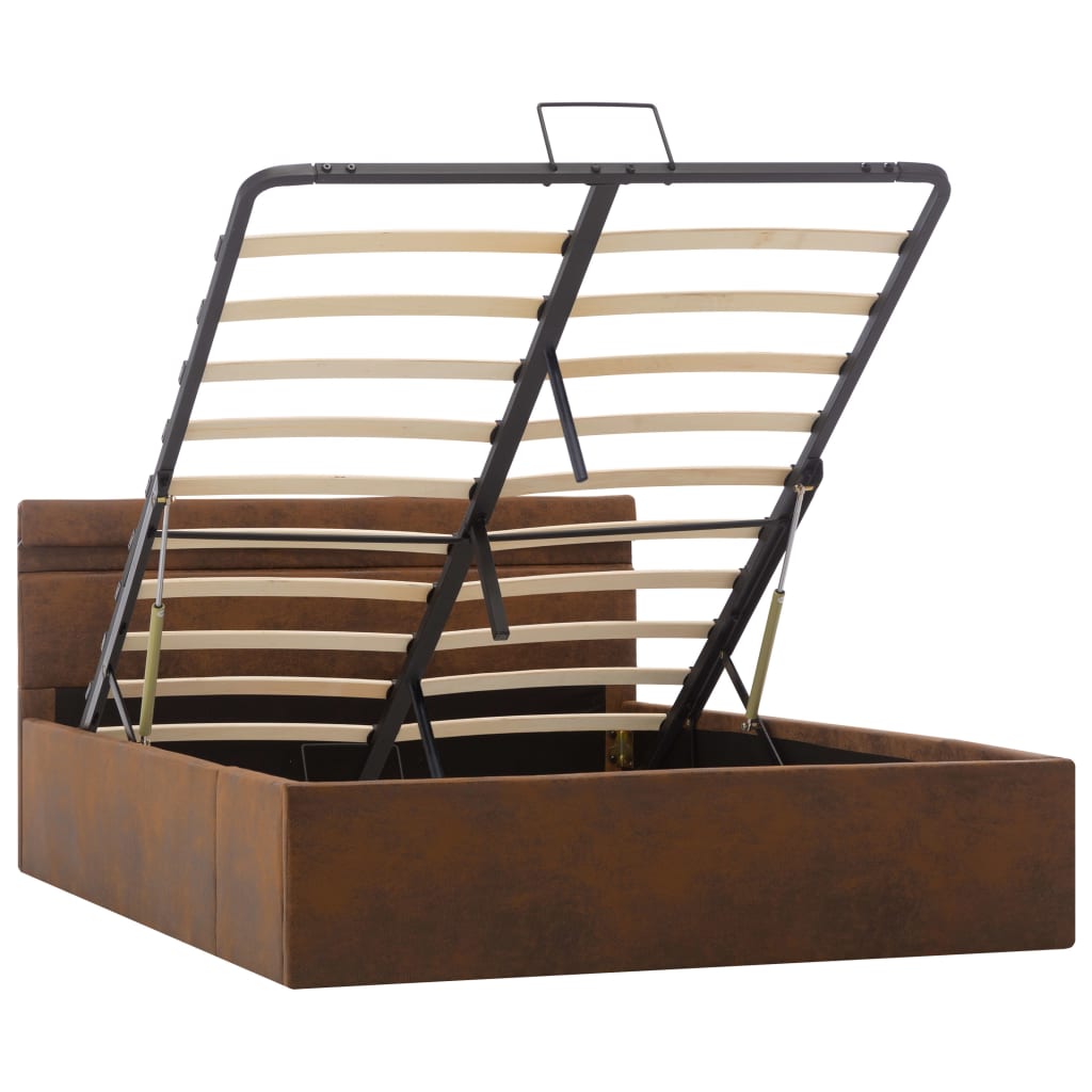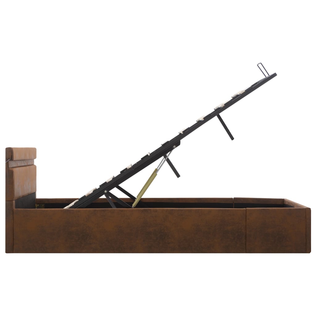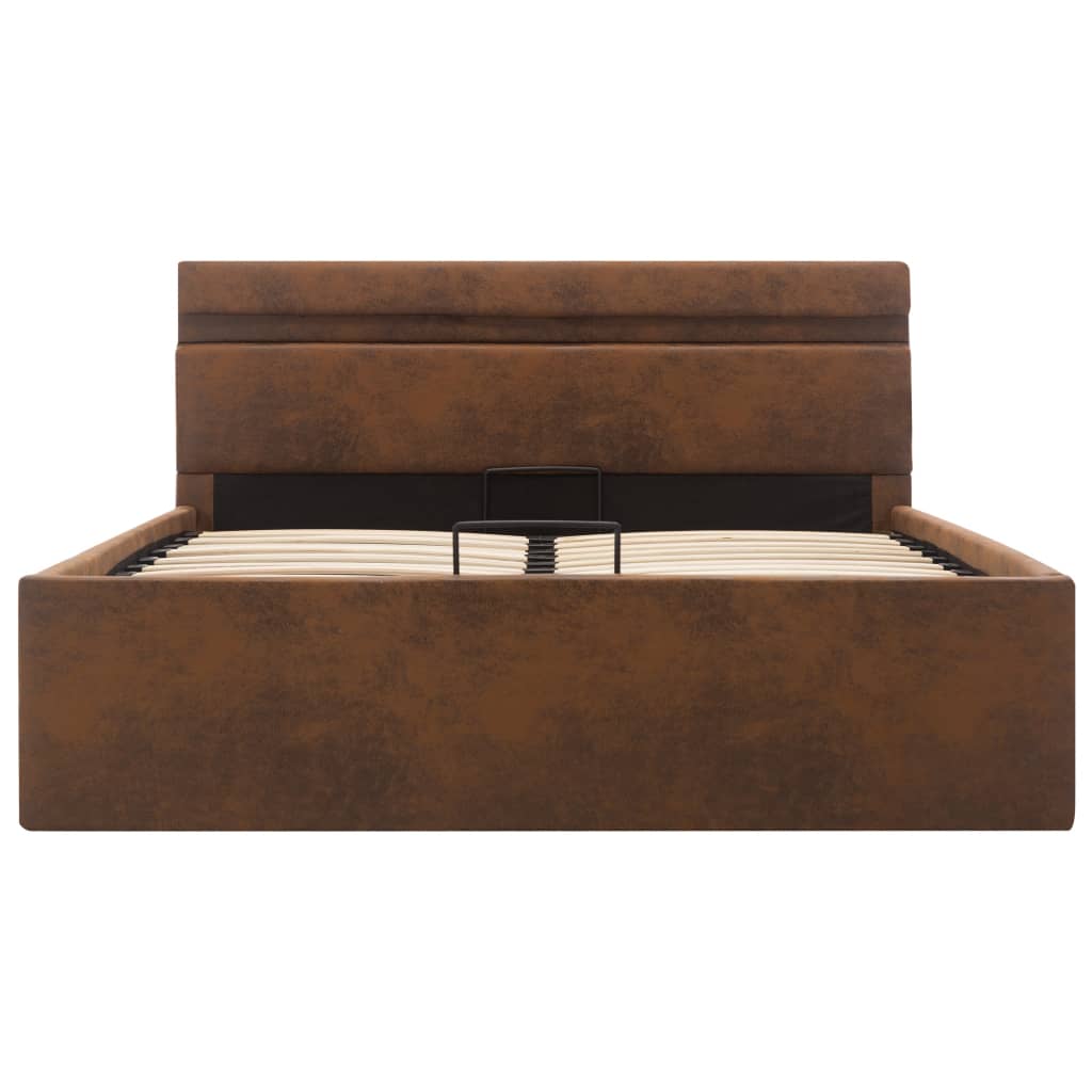 Cama hidráulica c/ arrumação e LED 120x200 cm tecido castanho
