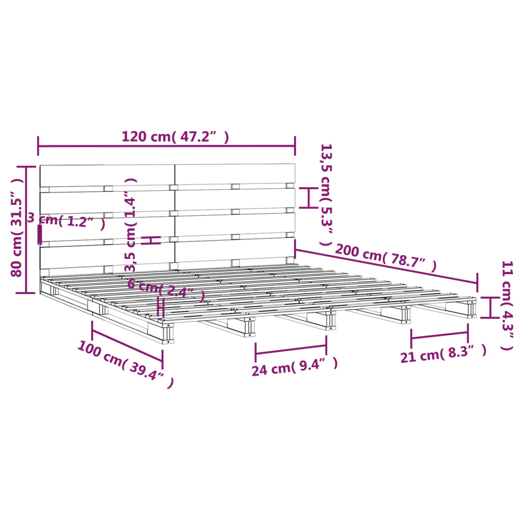 Cama sem colchão 120x200 cm madeira de pinho maciça branco