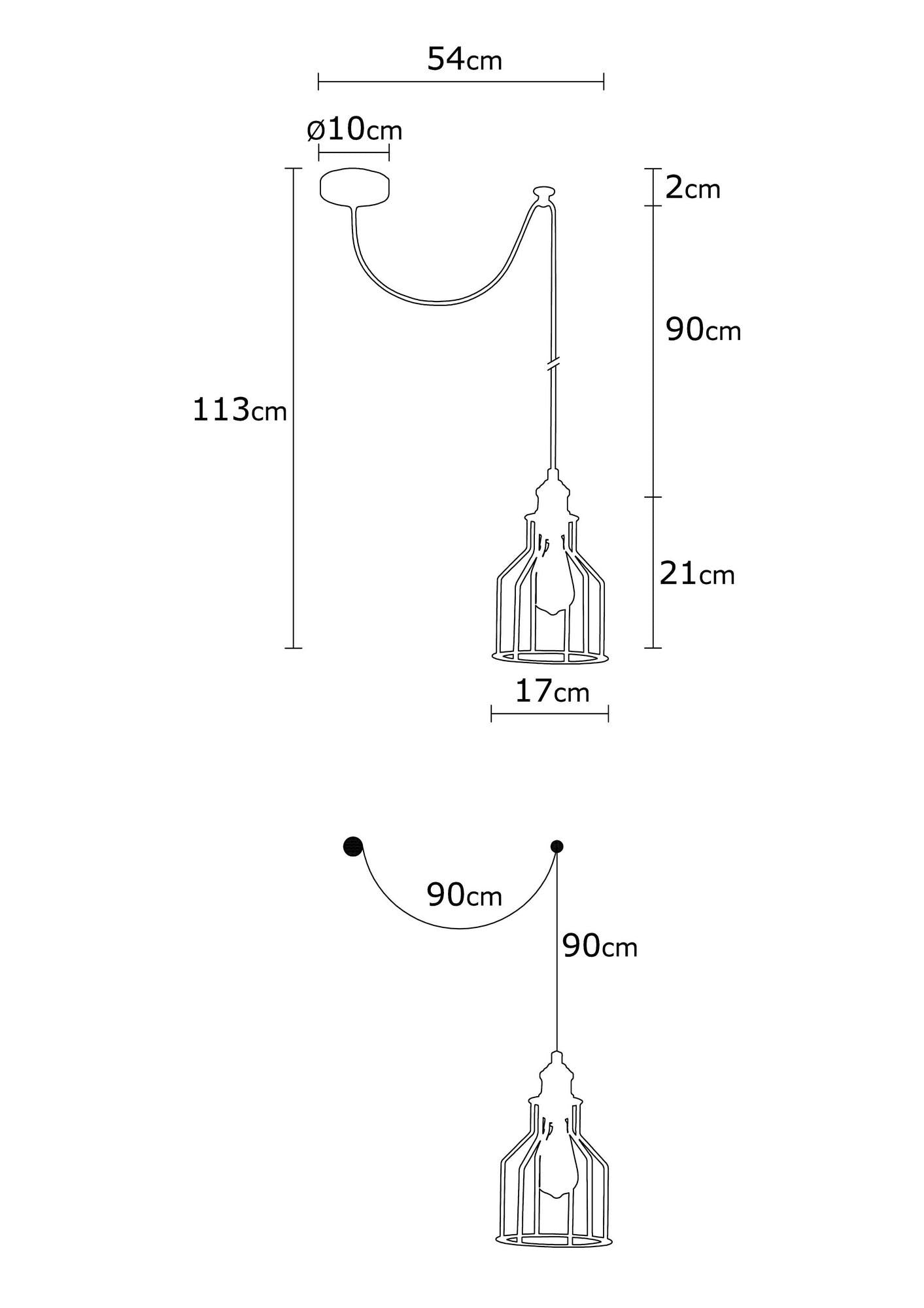 Candeeiro de Teto Industrial Elegante, Preto e Bronze, 54 cm de Diâmetro, 113 cm de Altura | Corpo em Metal, Soquete E27, Cabo de 180 cm | Design Escandinavo Moderno para Casa