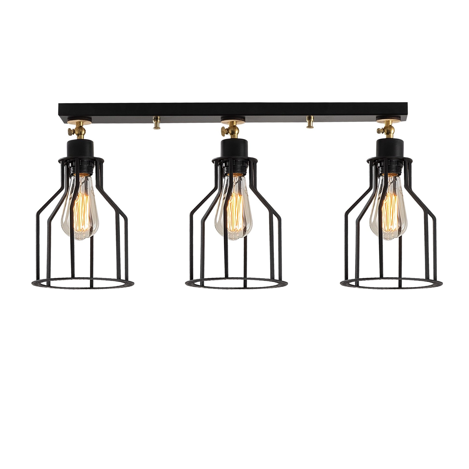 Candeeiro de Teto Industrial Moderno, Preto e Dourado, 72 x 17 cm | Corpo em Metal, 3 Soquetes E27, Altura: 30 cm | Iluminação Elegante para Casa e Escritório