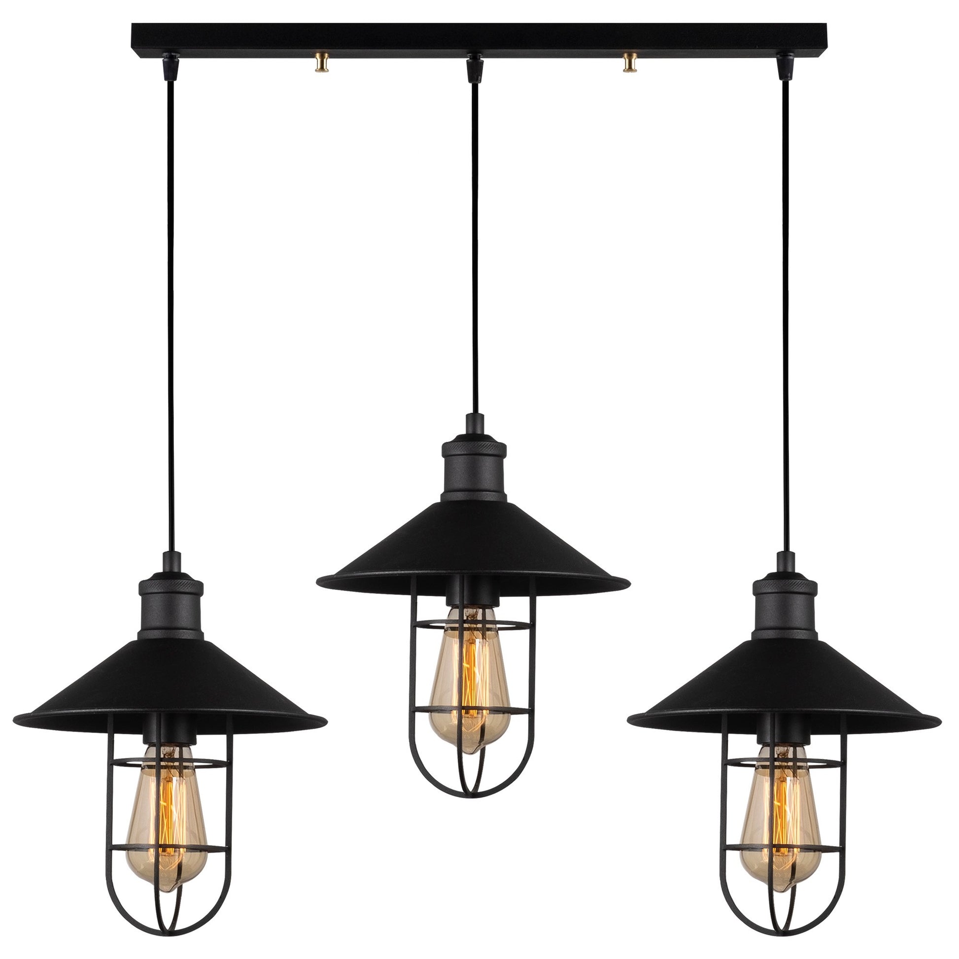 Candeeiro de Teto preto moderno, corpo de metal, 94 x 24 cm, altura 124 cm, ajustável, 3 soquetes E27, design industrial, perfeito para casa e escritório