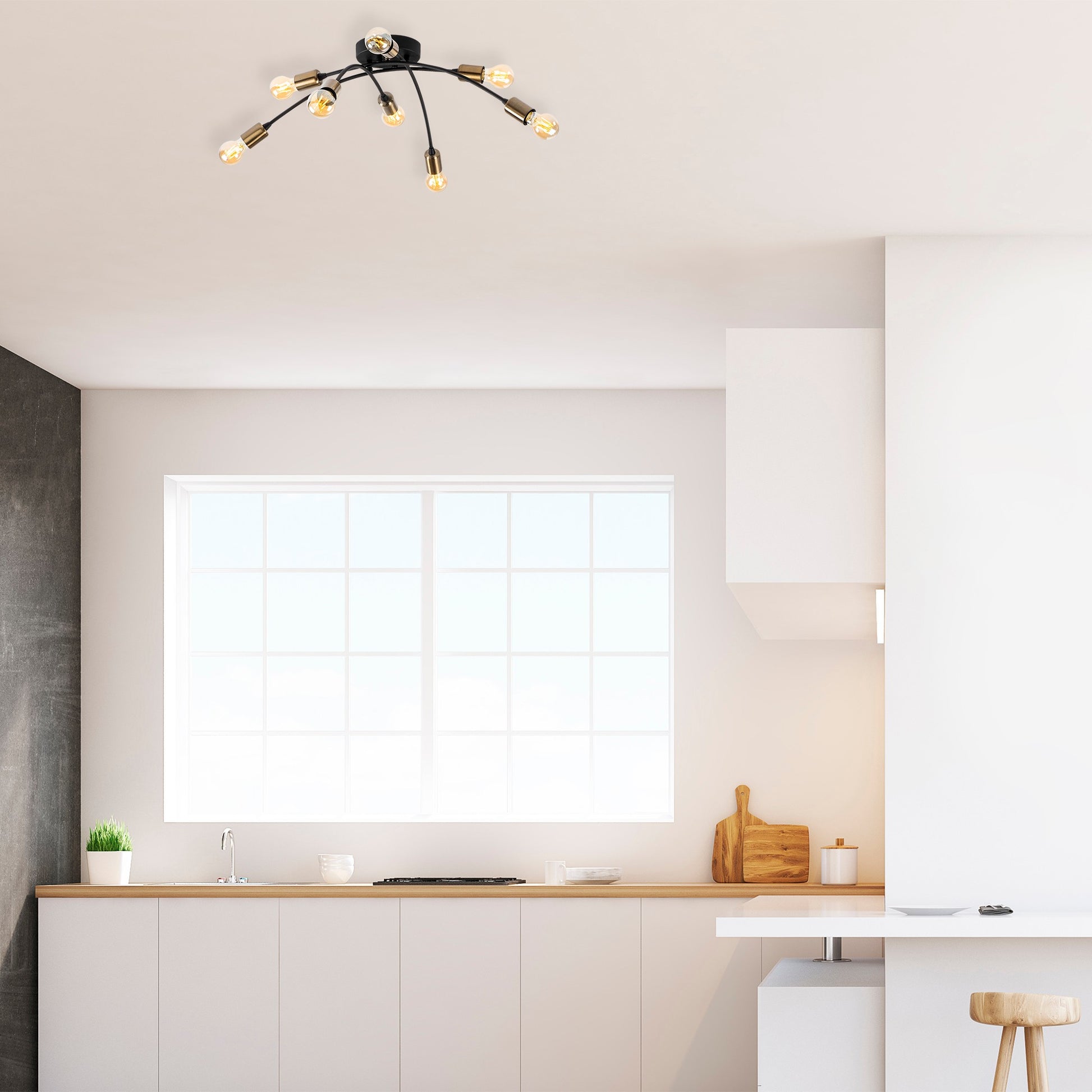 Com o seu tamanho generoso de 79 x 79 cm e uma altura de 26 cm, este candeeiro torna-se o ponto focal de qualquer divisão. O seu design cativante apresenta oito tomadas, permitindo-lhe iluminar o seu espaço com um brilho quente e convidativo.