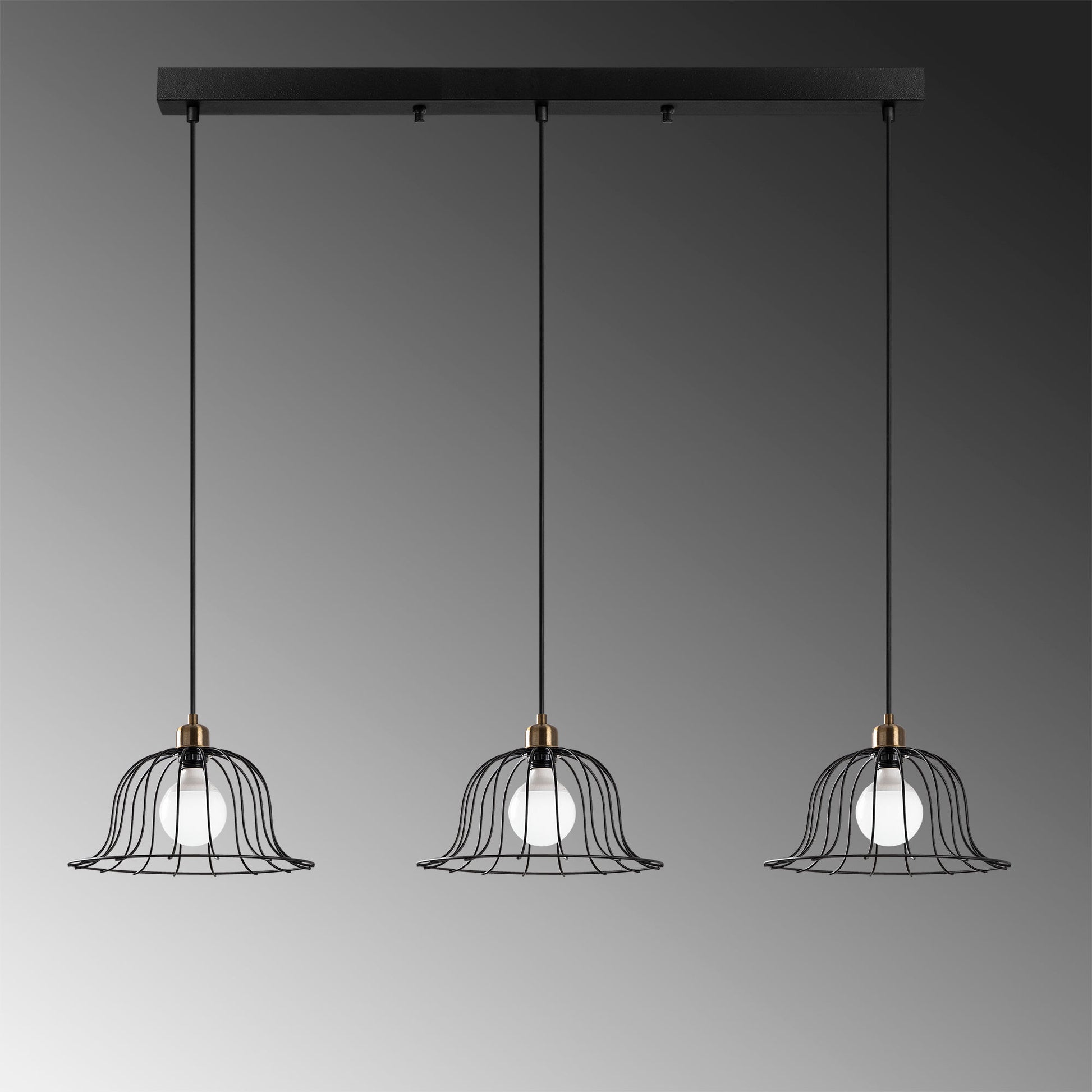 Candeeiro de Teto Industrial com Corpo Metálico, Altura Ajustável, 3 Soquetes E27, Acabamento Preto e Antigo, 147 x 35 x 31-121 cm | Solução Moderna de Iluminação Residencial
