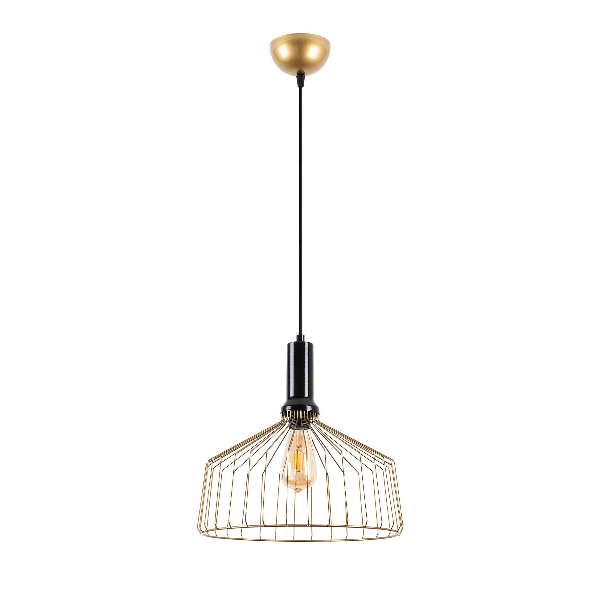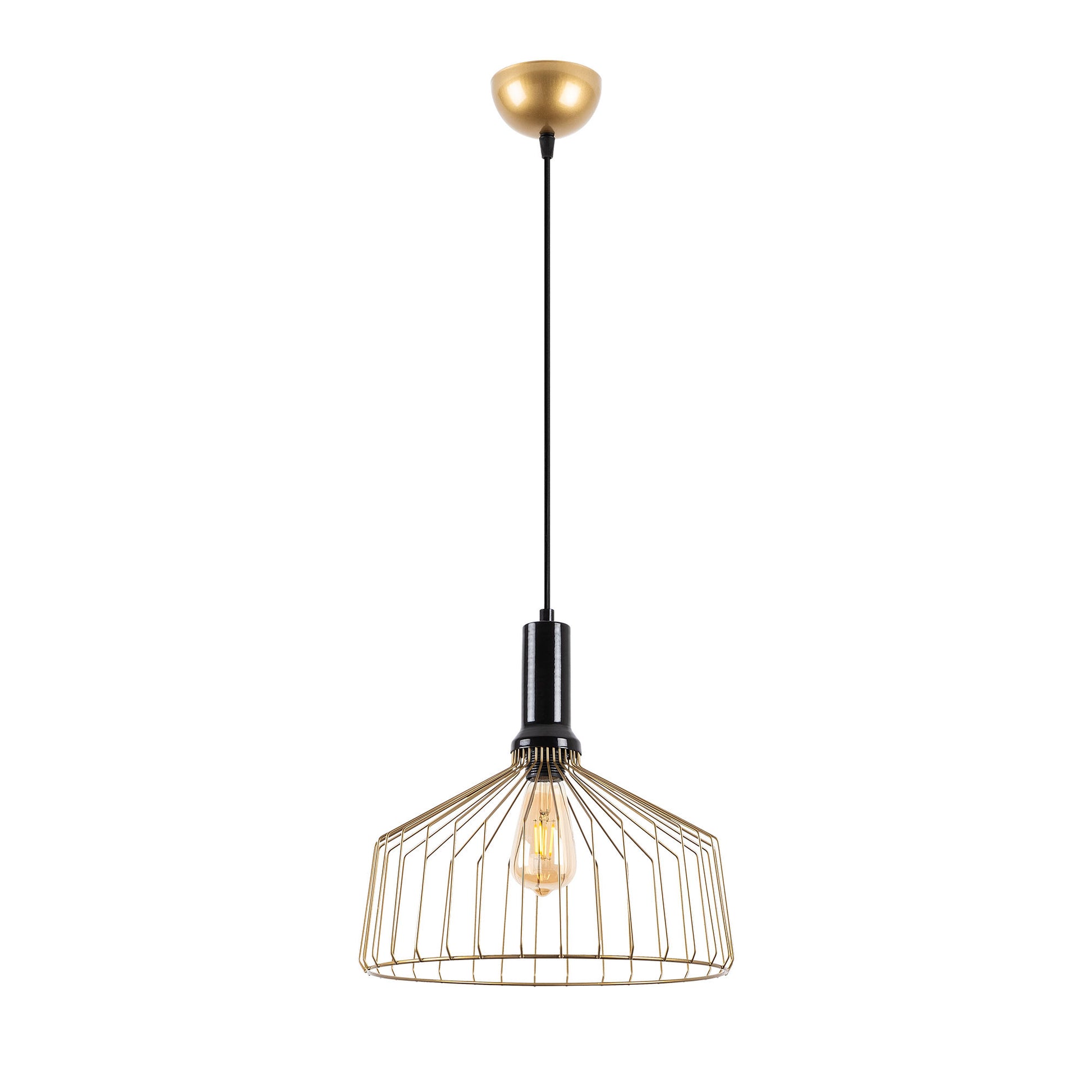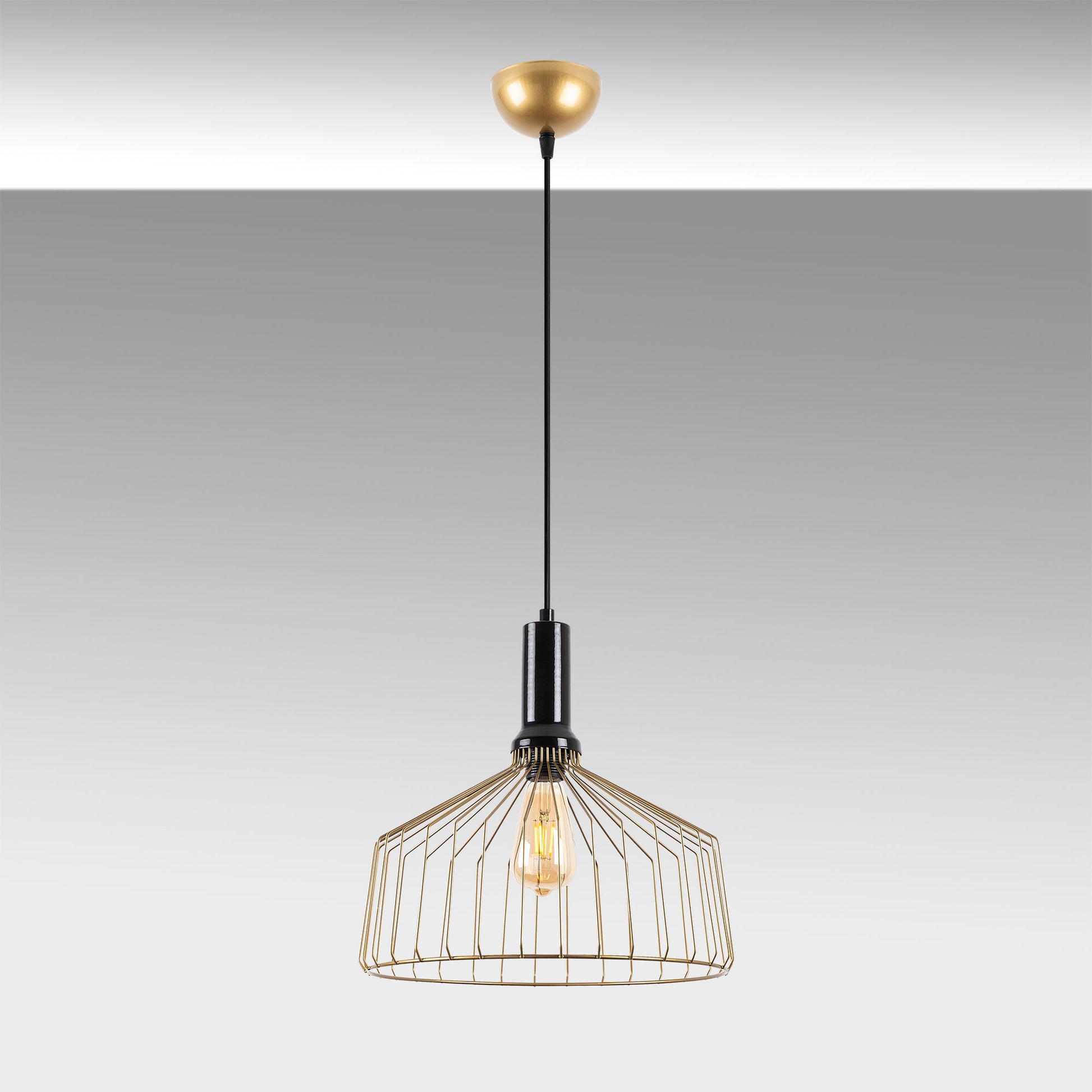 Candeeiro de Teto Dourado Brilhante e Glamouroso, Corpo em Metal, Altura Ajustável, 34 x 34 x 134 cm | Soquete E27, Potência Máxima de 40 W | Iluminação Elegante para Espaços Modernos