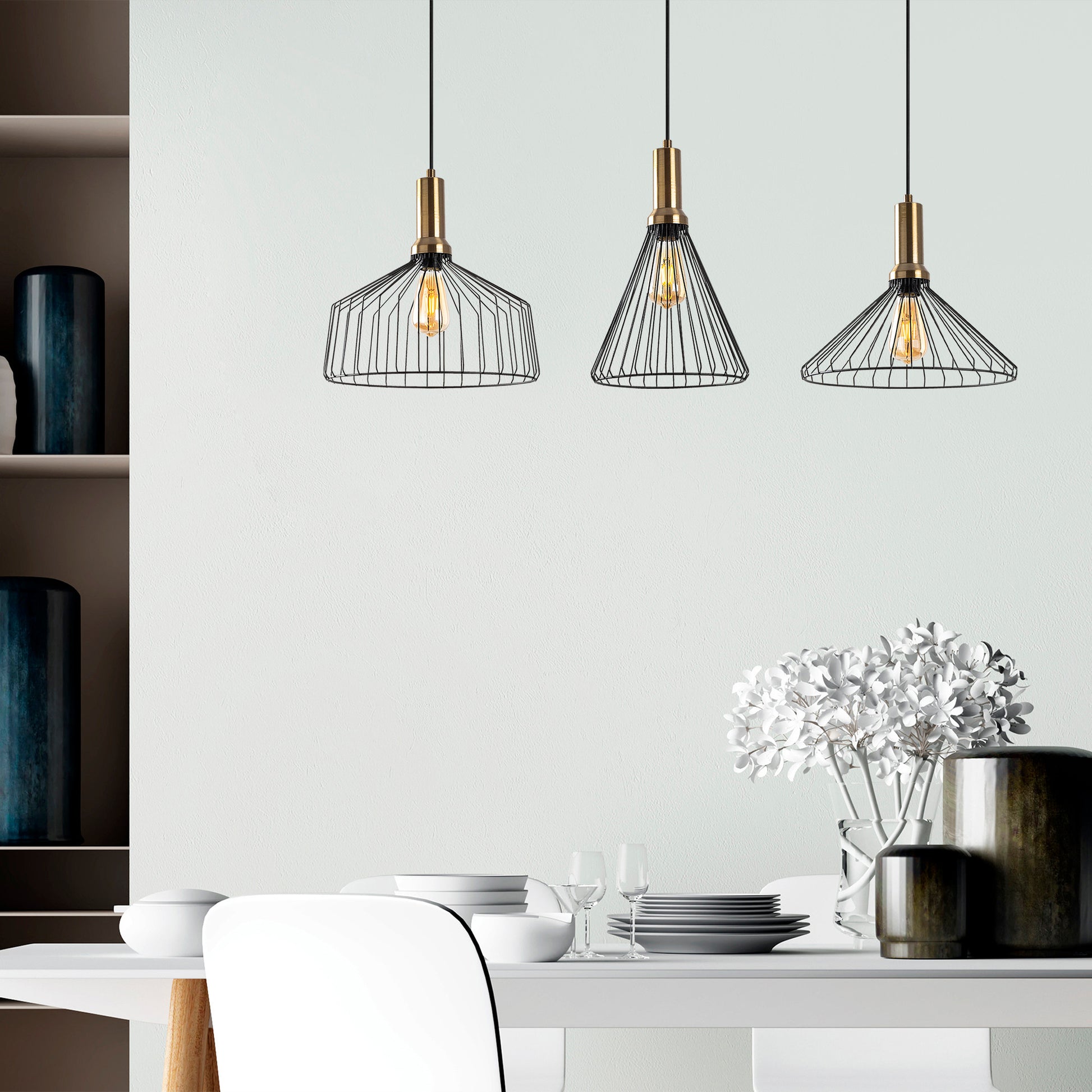 Candeeiro de Teto industrial moderno, corpo de metal, acabamento preto e antigo, 104 x 34 cm, altura ajustável de 50 a 140 cm, 3 soquetes E27, design elegante e glamouroso