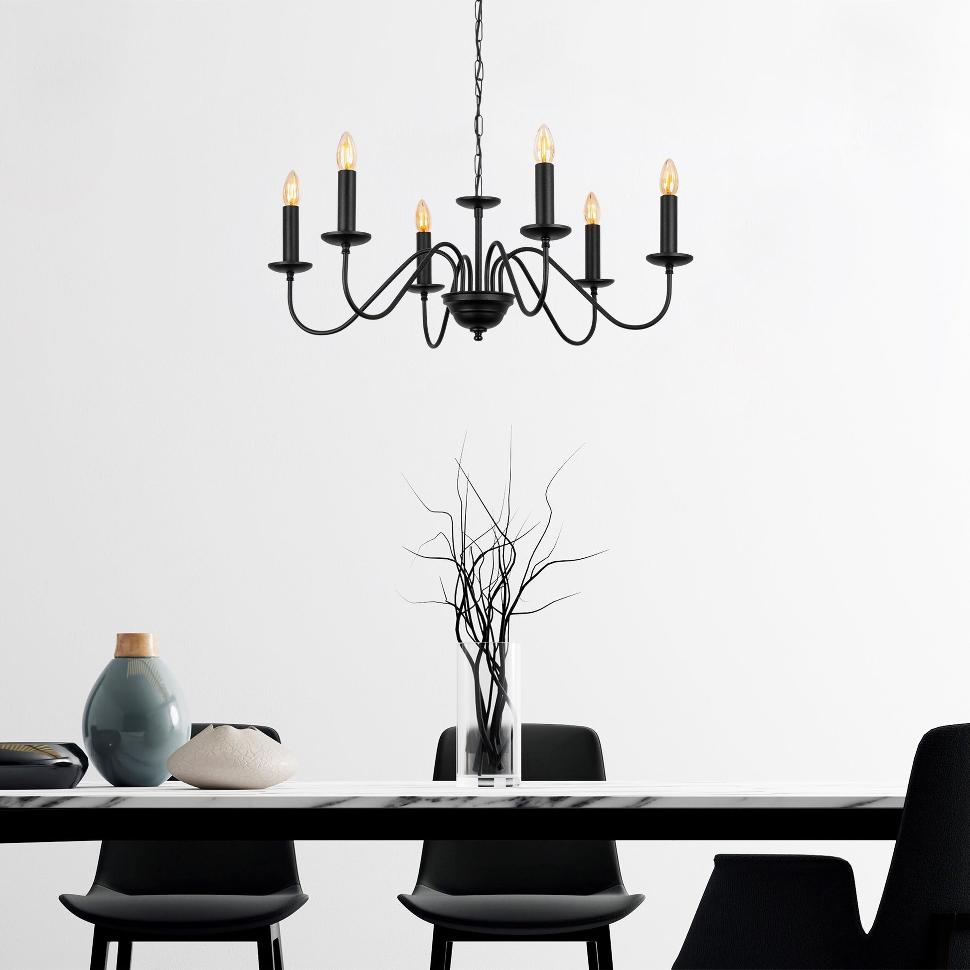Candeeiro de Teto elegante preto e antigo, corpo de metal, 76 x 76 x 41 cm, altura ajustável até 129 cm, 6 soquetes E14, perfeito para decoração tradicional americana
