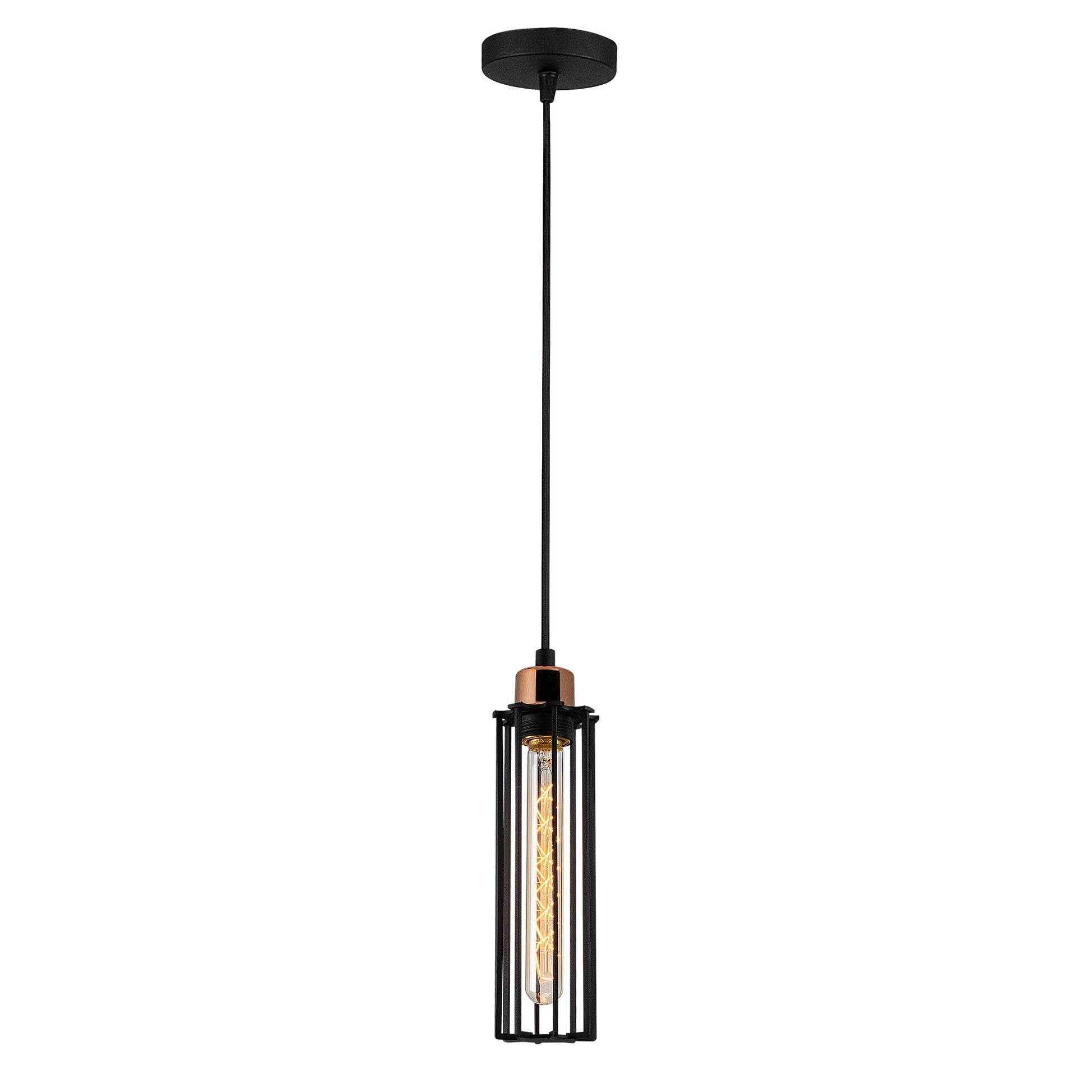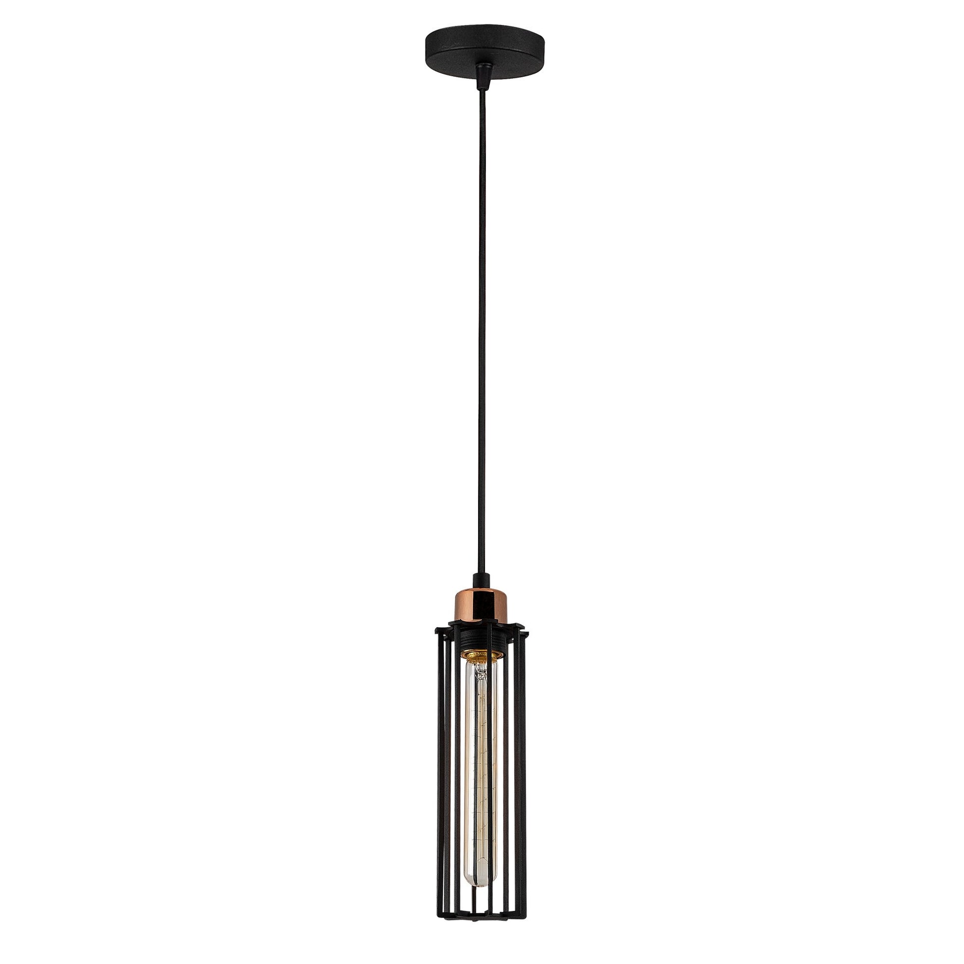 Candeeiro de Teto Industrial Moderno, Preto e Bronze, 117 cm de Altura | Corpo em Metal, Soquete E27, 40 W Máx. | Iluminação Elegante para Casa e Escritório