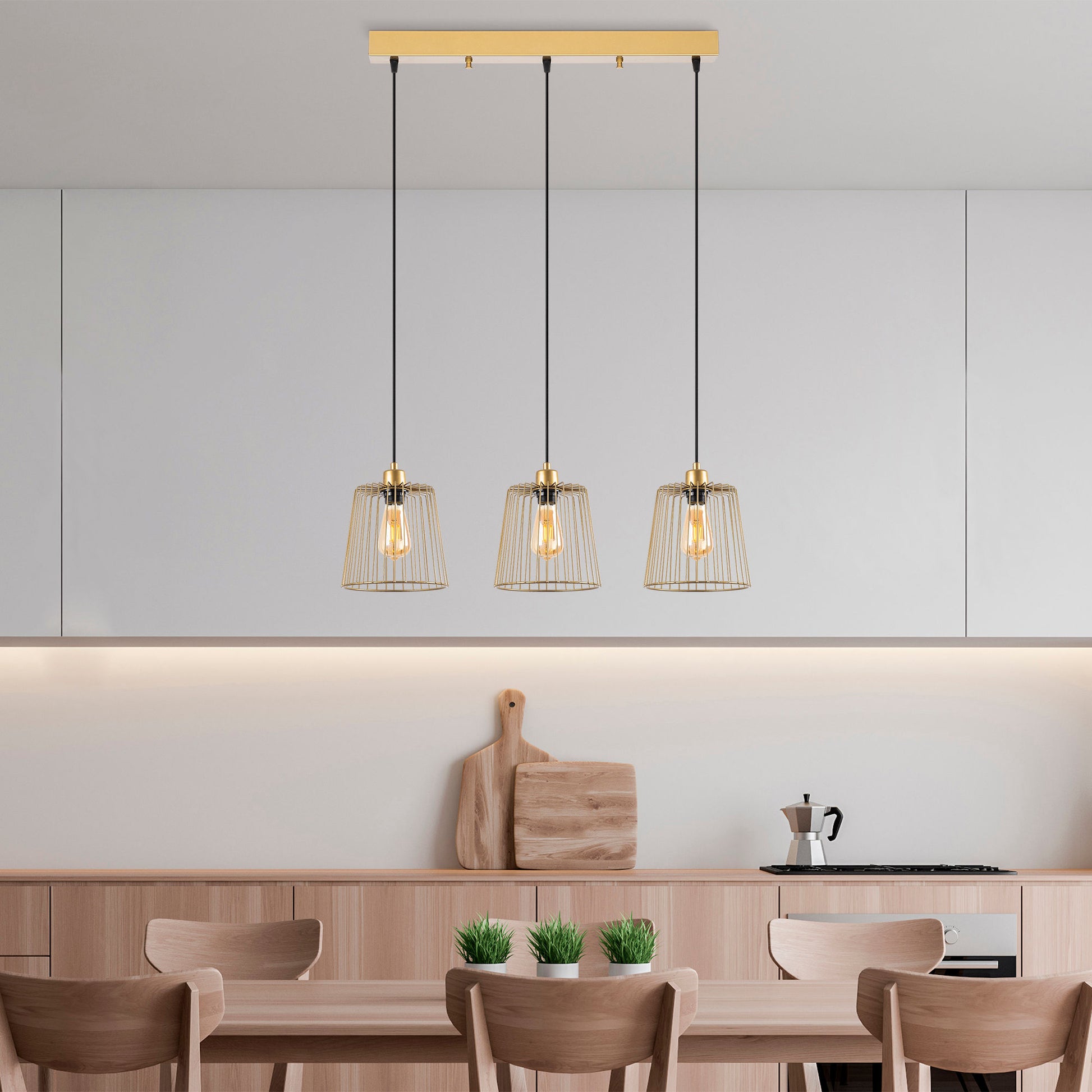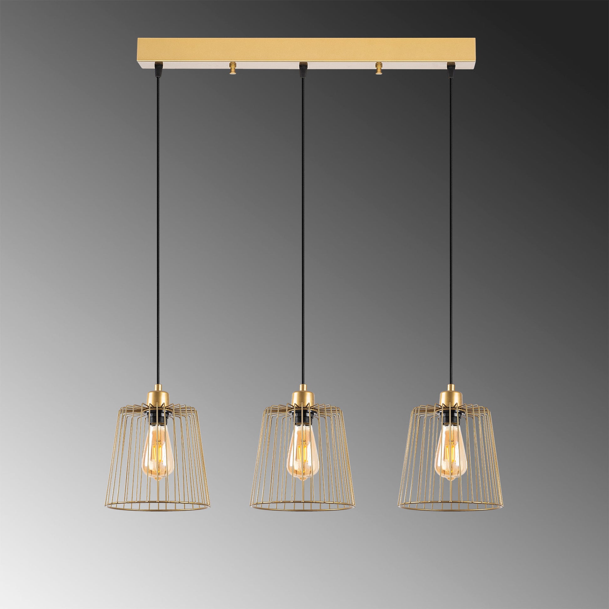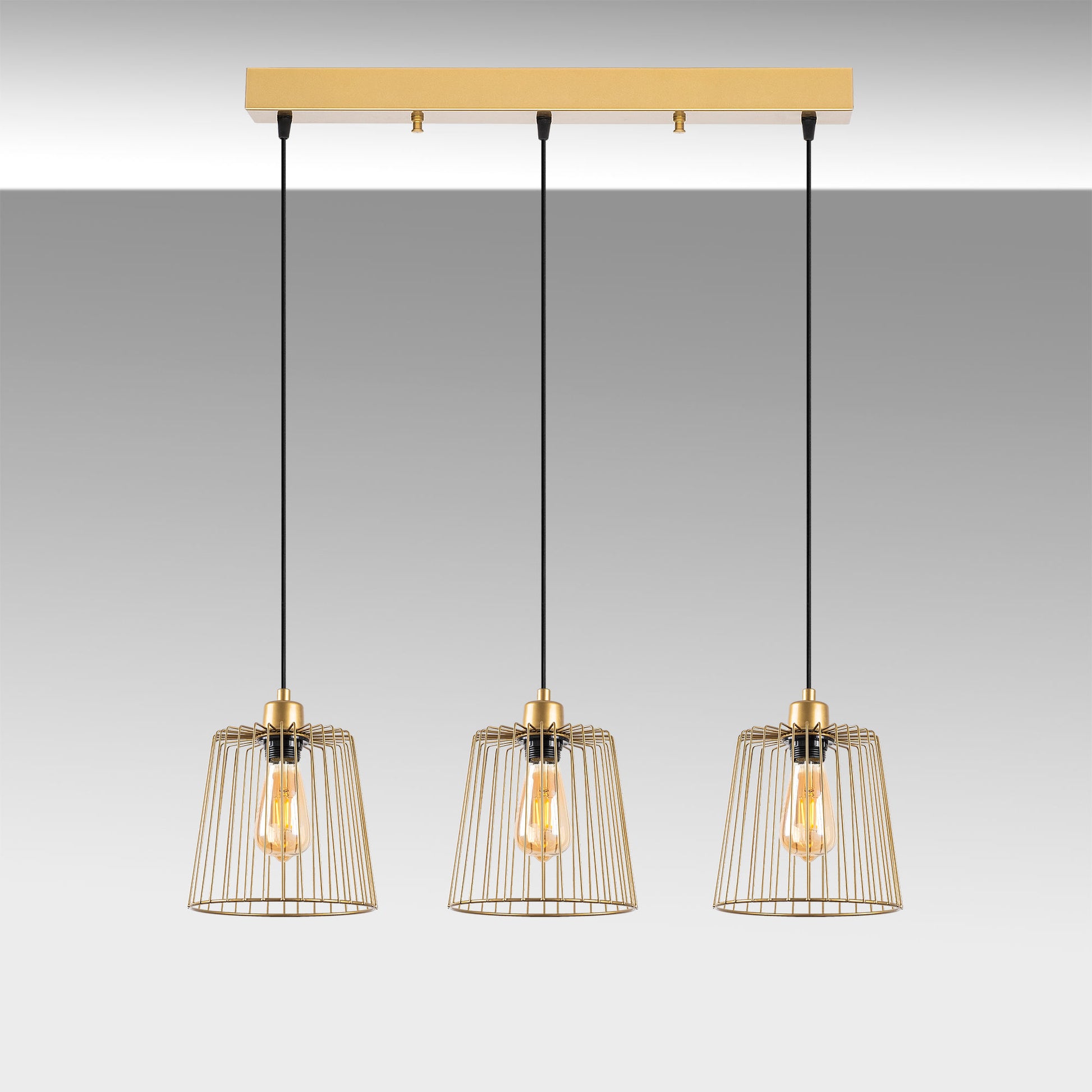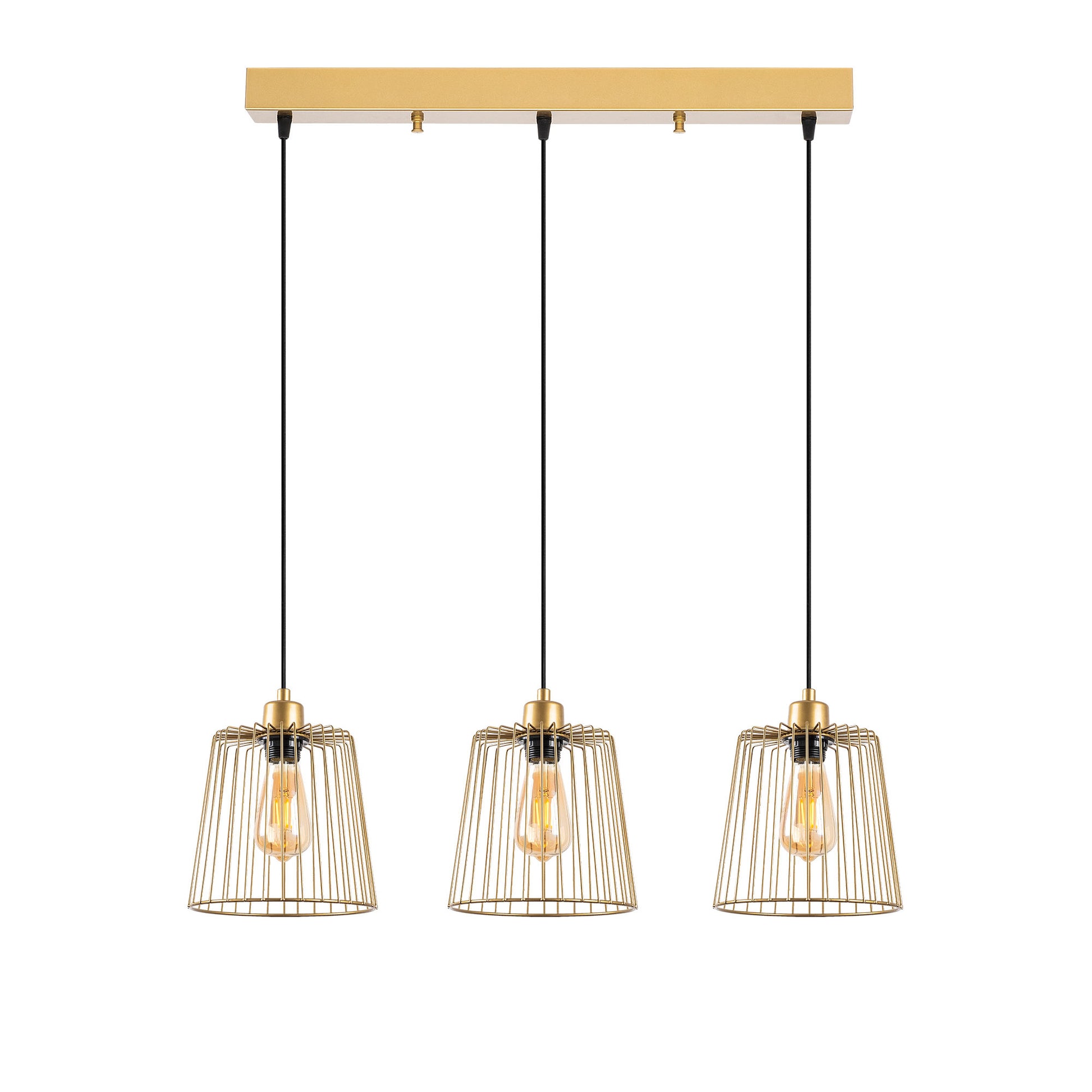 Candeeiro de Teto elegante em ouro brilhante, corpo de metal, altura ajustável, 68 x 16 x 114 cm | 3 x E27 máx. 40 W | Design moderno para decoração elegante