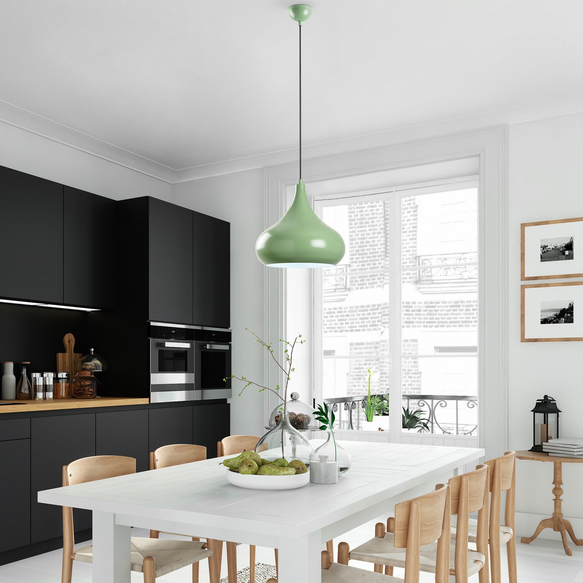 Eleve o seu espaço com a beleza cativante do nosso candeeiro de menta. O intrincado corpo metálico do candeeiro exala qualidade e habilidade, enquanto a altura ajustável permite-lhe personalizar o aspeto para se adequar perfeitamente ao seu espaço. Quer o pendure em baixo sobre uma mesa de jantar para um efeito dramático ou mais alto numa sala de estar para um toque mais subtil, este candeeiro será o ponto focal de qualquer divisão.