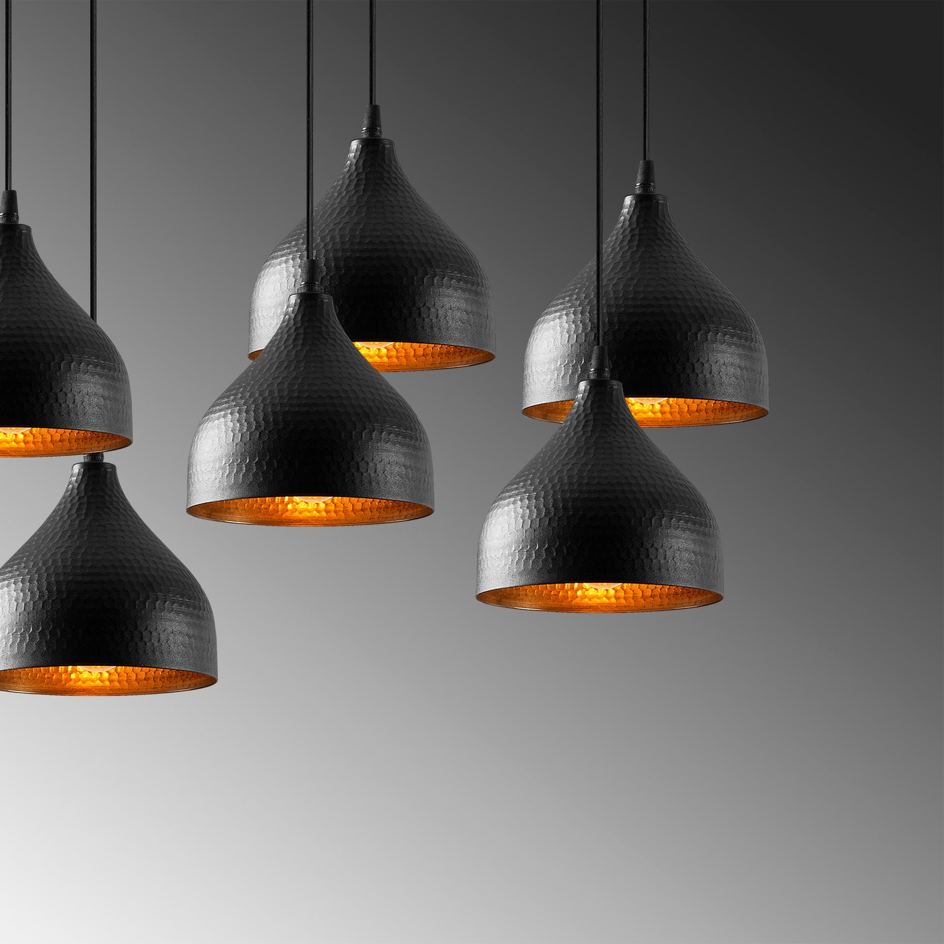 O design único do candeeiro combina elementos modernos, inovadores, industriais e escandinavos, criando uma atmosfera cativante que deixará os seus convidados maravilhados. A sua cor preta acrescenta um toque ousado e dramático, tornando-o numa peça de afirmação que irá melhorar sem esforço a estética geral do seu espaço.
